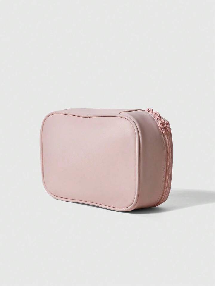 Kawaii Pink Cute Embroidered Bow Makeup Bag, Square Portable Toiletry Organizer