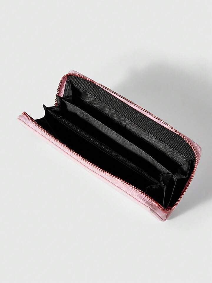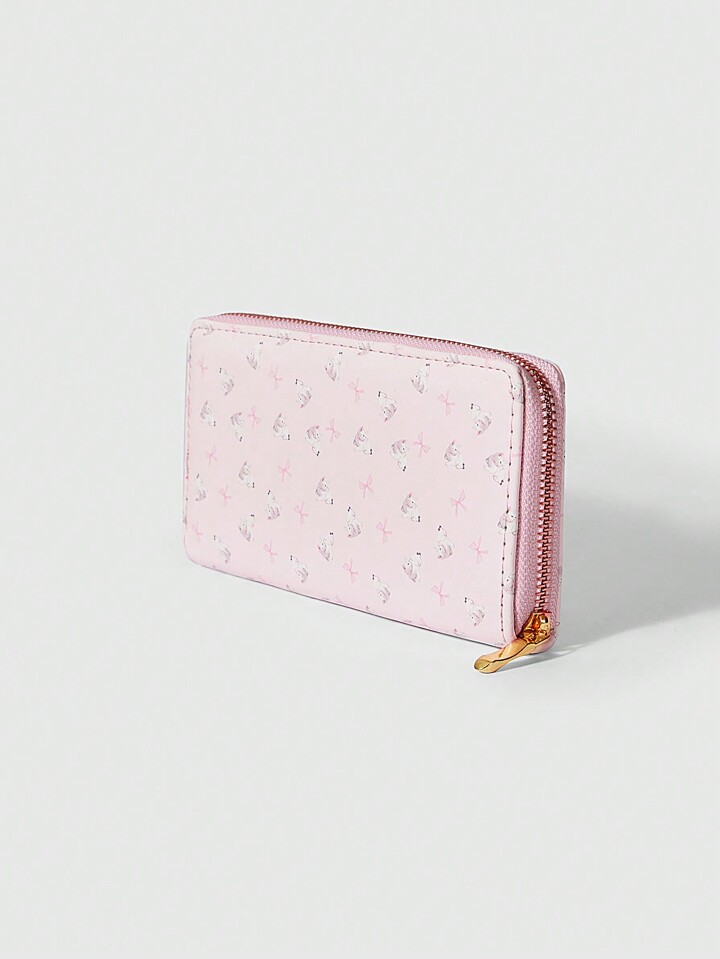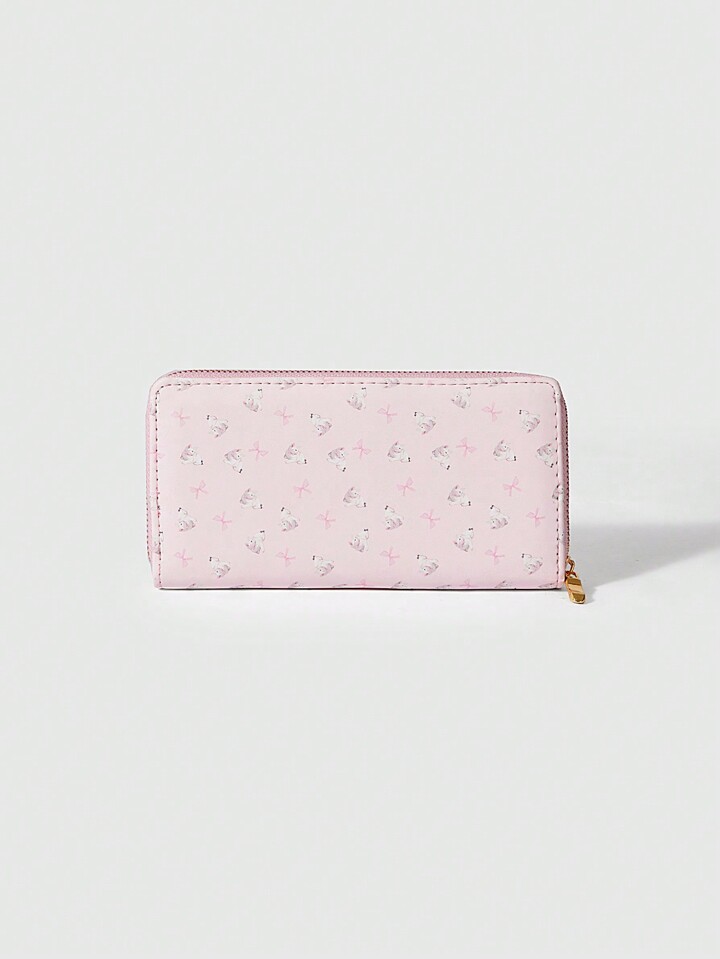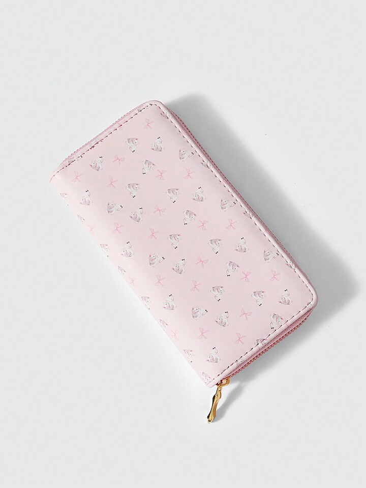 Kawaii Pink Minimalist Zipper Women's Long Wallet With Cat Pattern