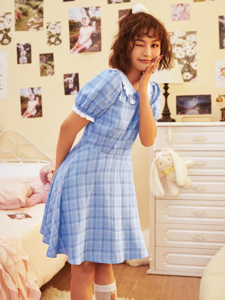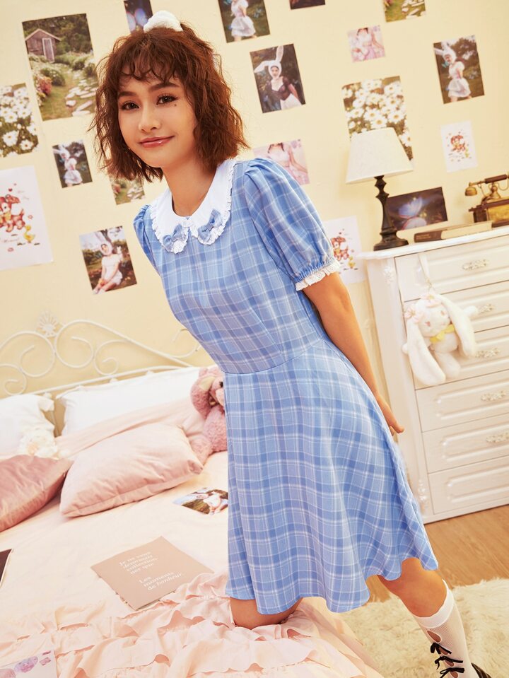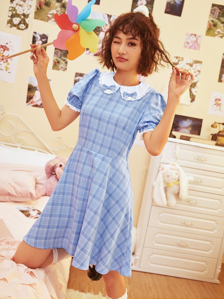 Kawaii Plaid Bow Peter Pan Collar Dress