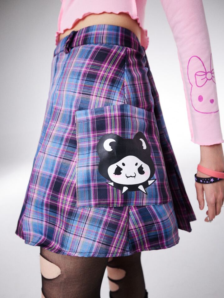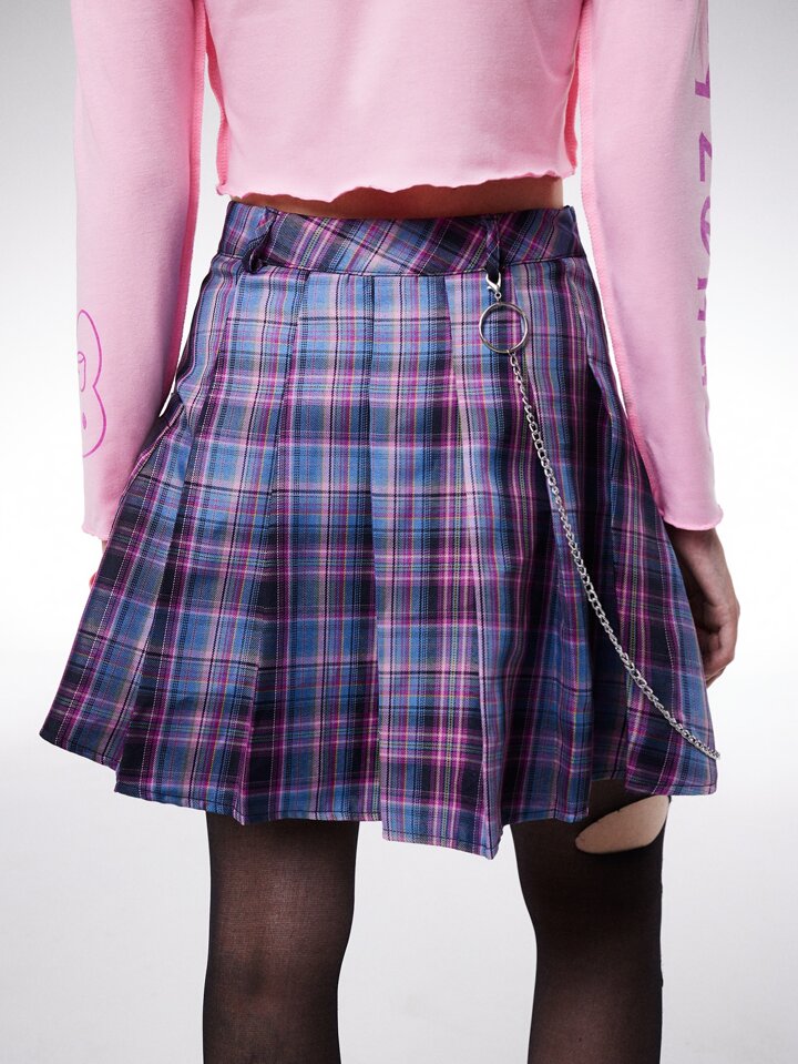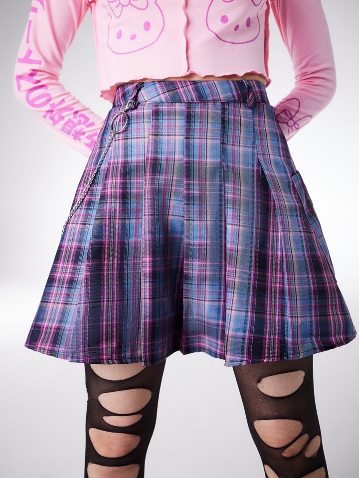 Kawaii Plaid Pleated Skirt With Chain