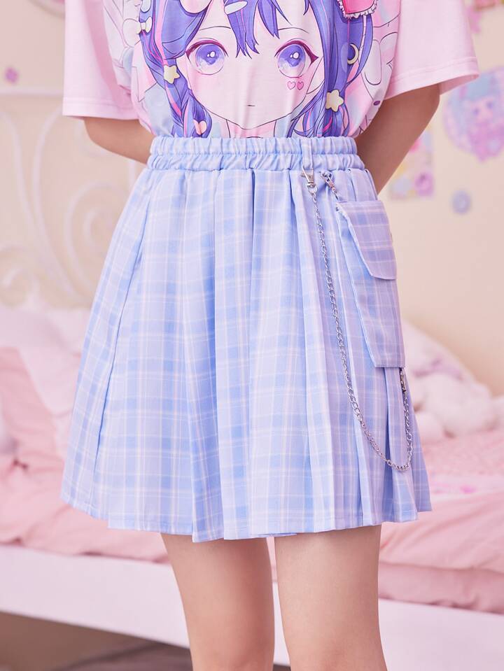 Kawaii Plaid Pocket Chain Pleated Skirt