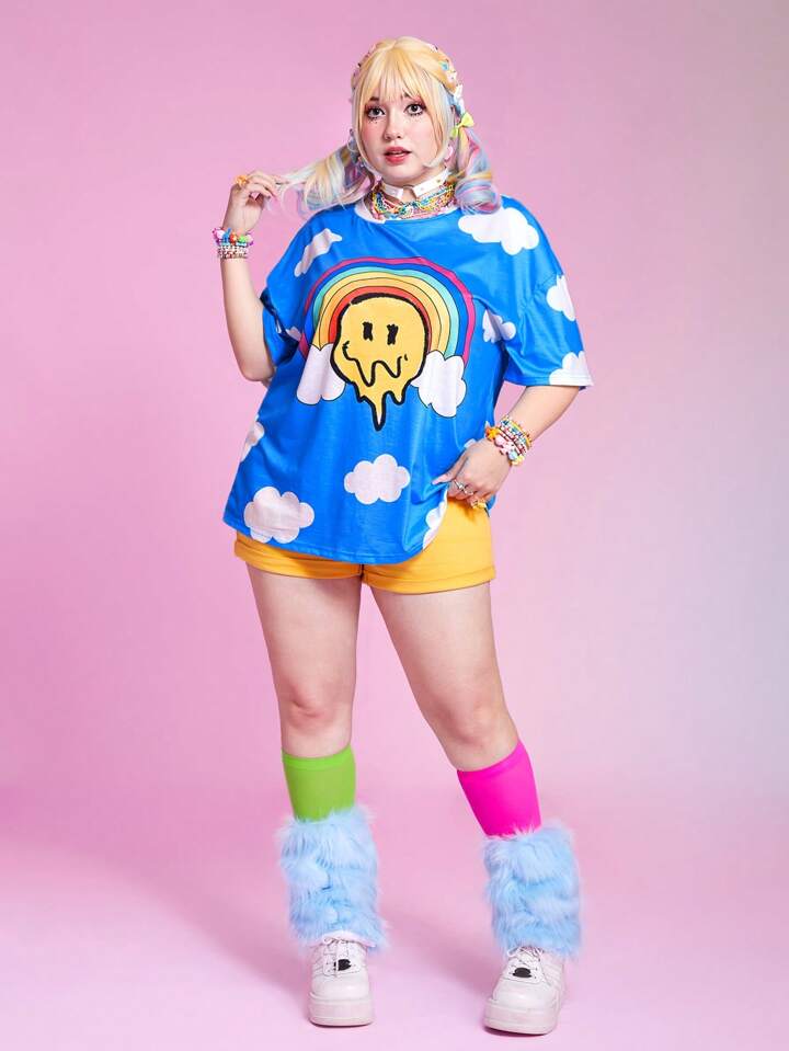 Kawaii Plus Cartoon Graphic Drop Shoulder Tee