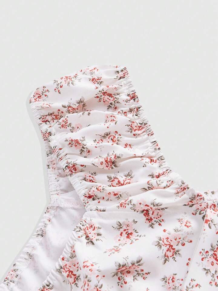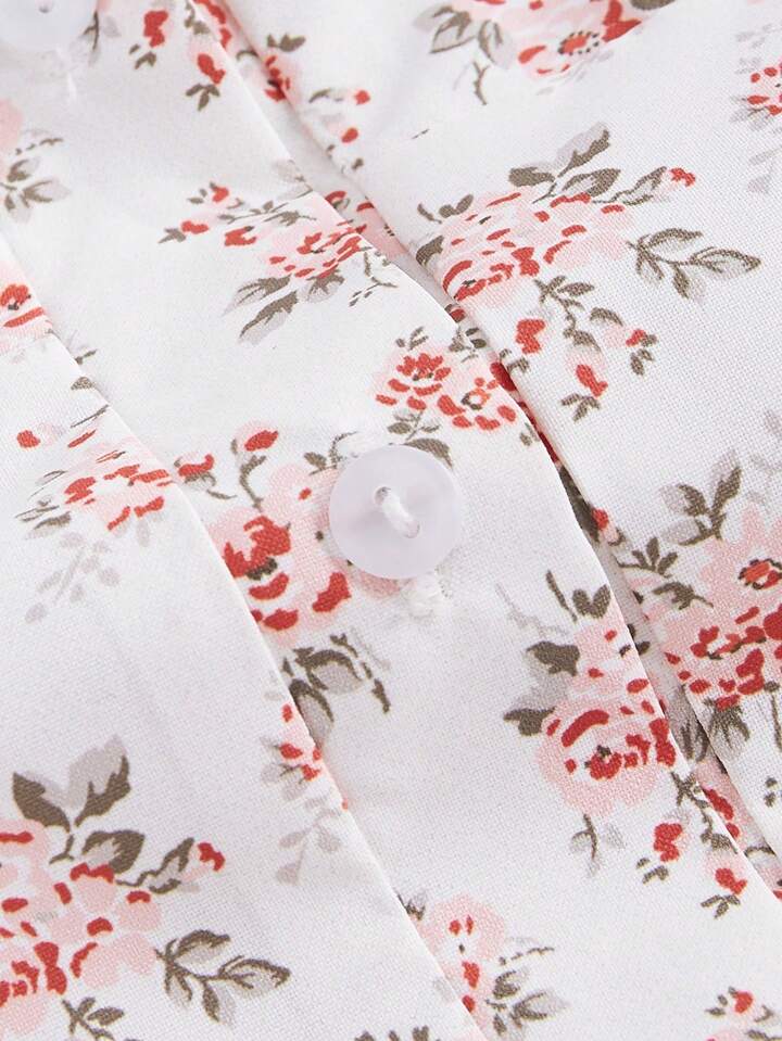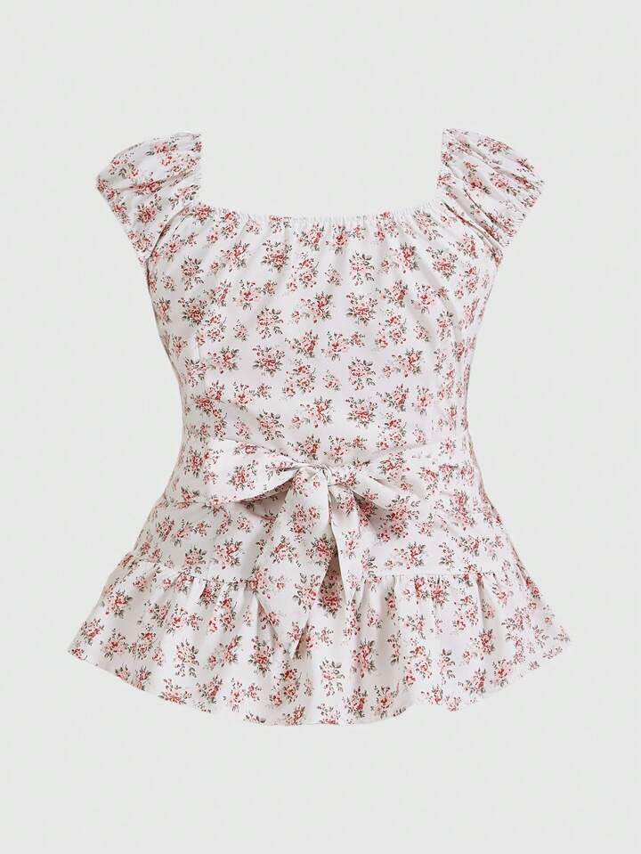 Kawaii Plus Ditsy Floral Print Ruffle Hem Blouse