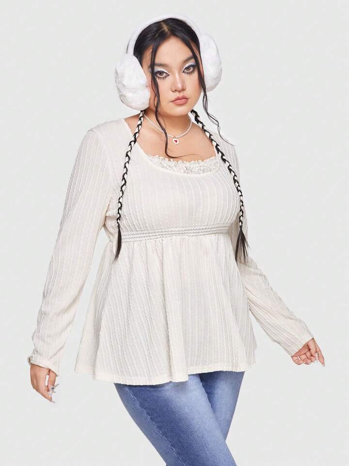 Kawaii Plus Frill Trim Square Neck Peplum Tee