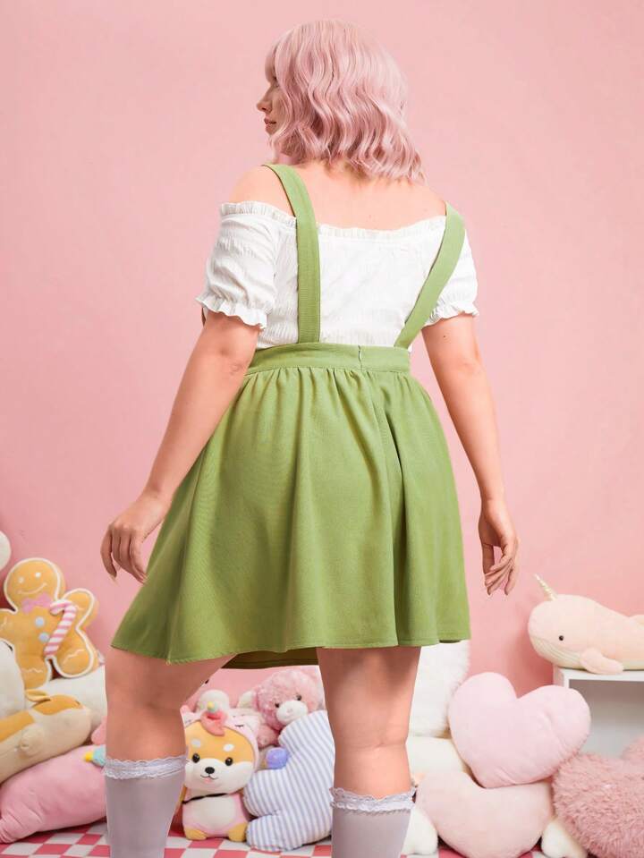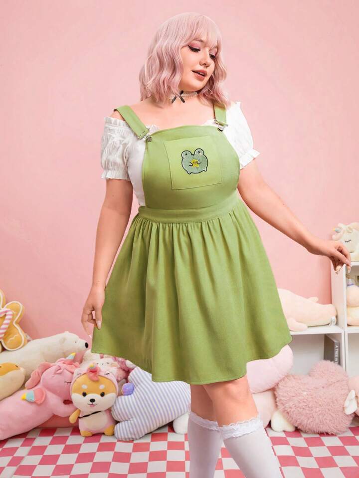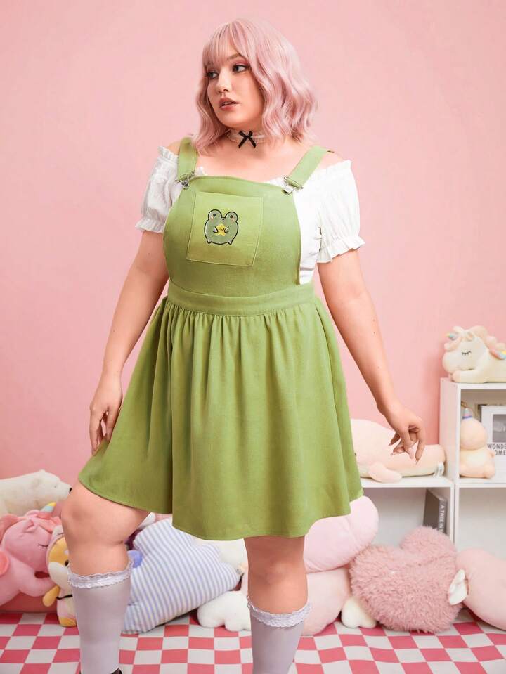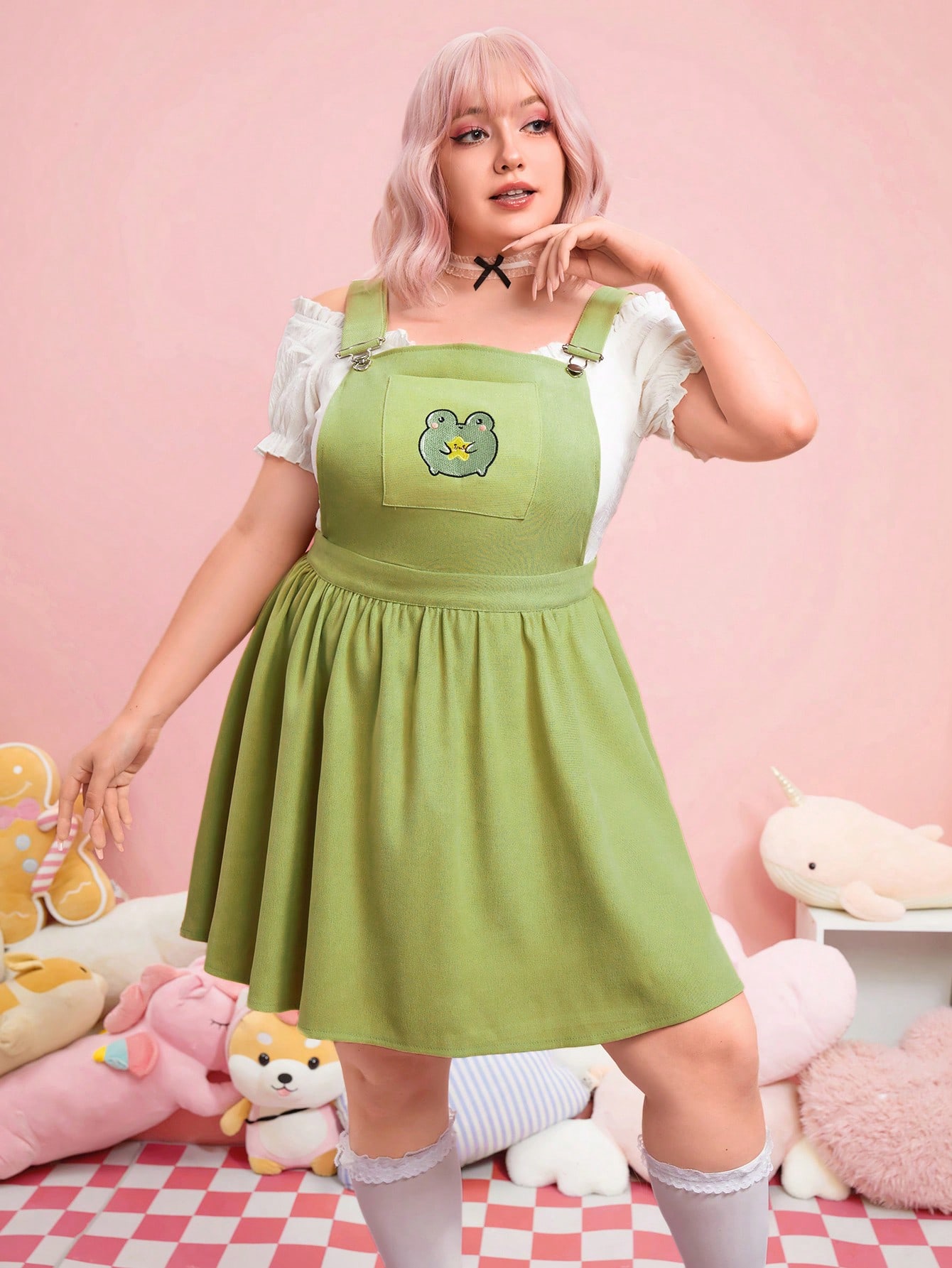 Kawaii Plus Frog Embroidery Overall Dress Without Top