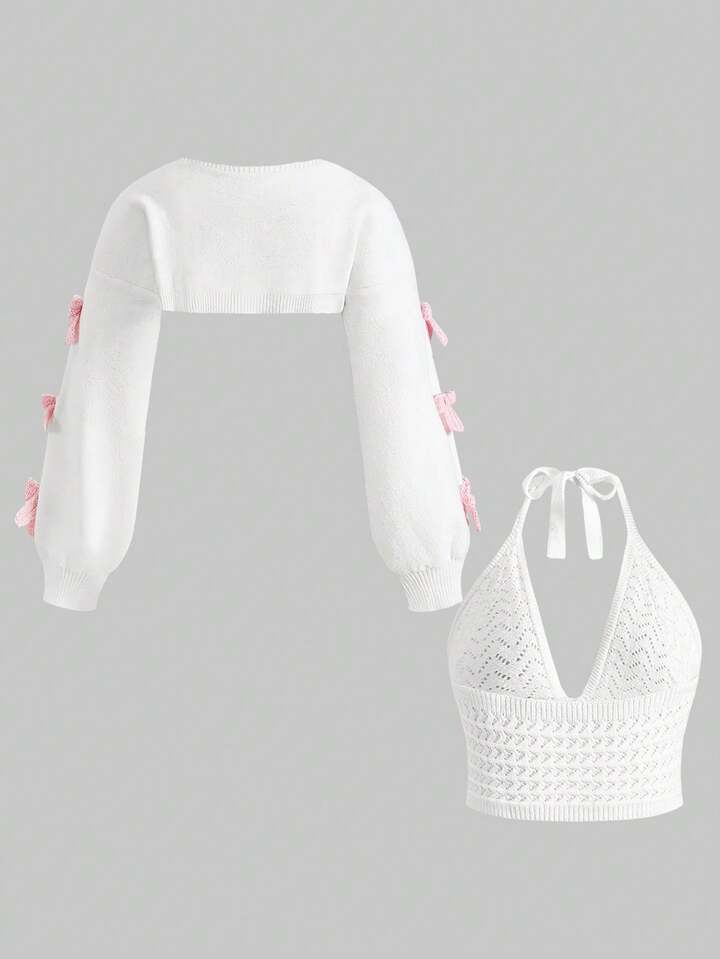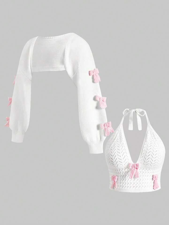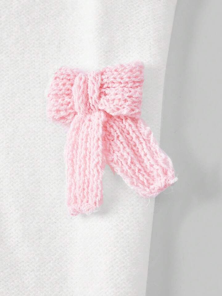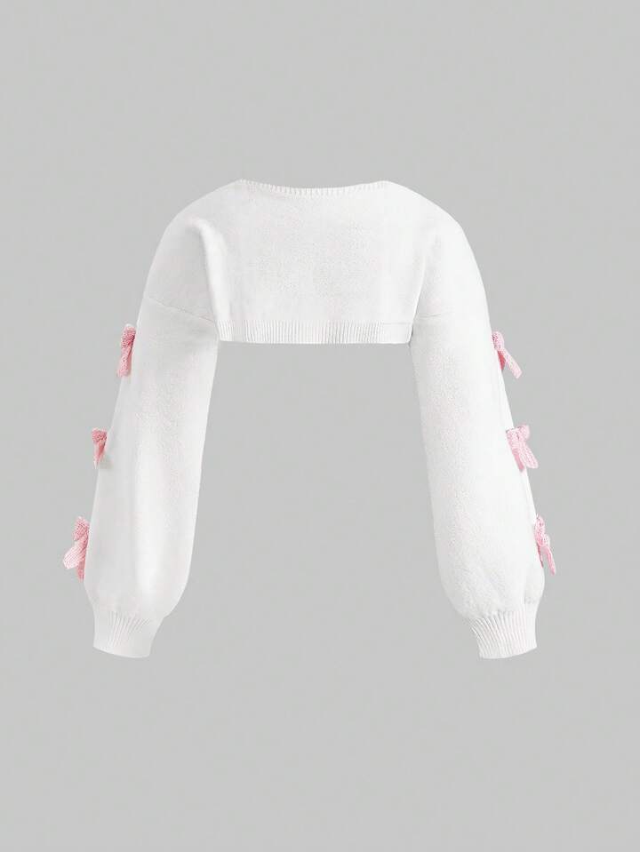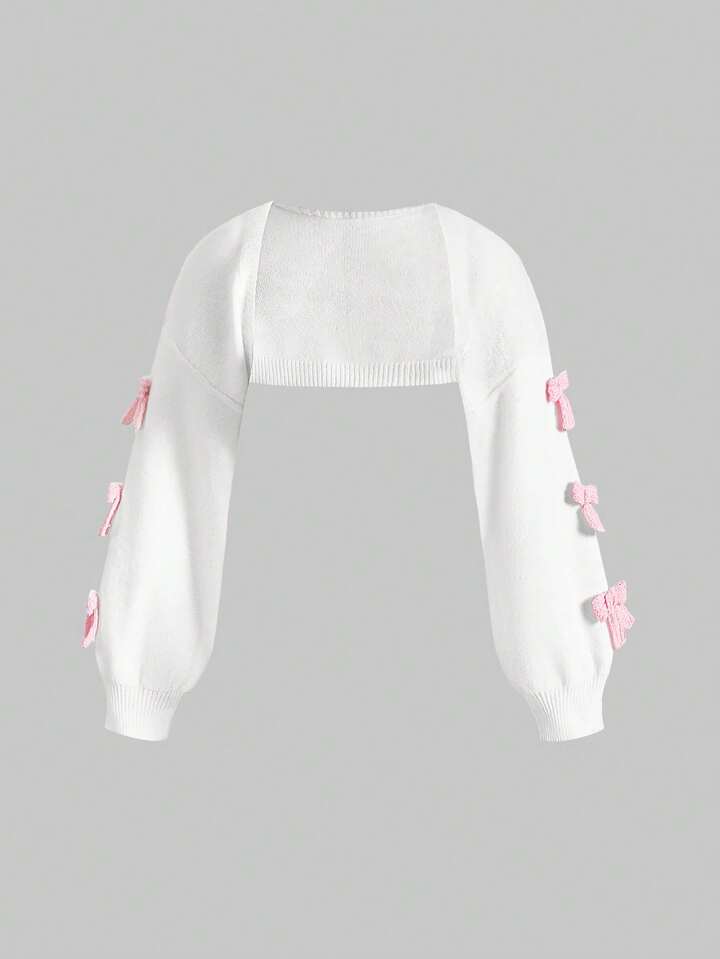 Kawaii Plus Size Autumn/Winter Solid Bow Decor Cute Sweet Knitted Cardigan Set