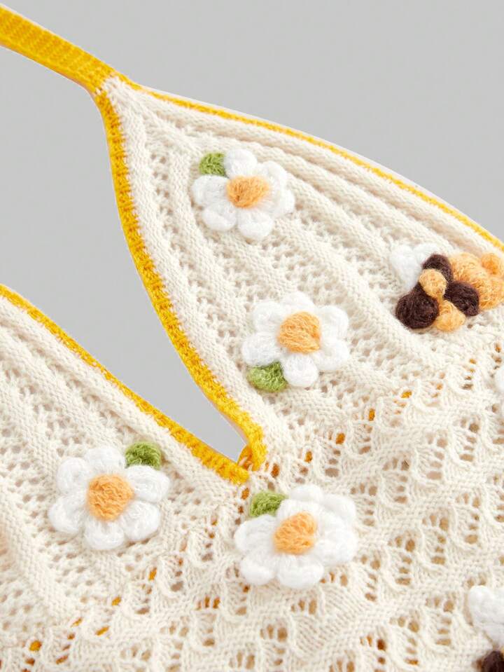 Kawaii Plus Size Colorblock Bee & Floral Knit Blouse, Resort/Beach
