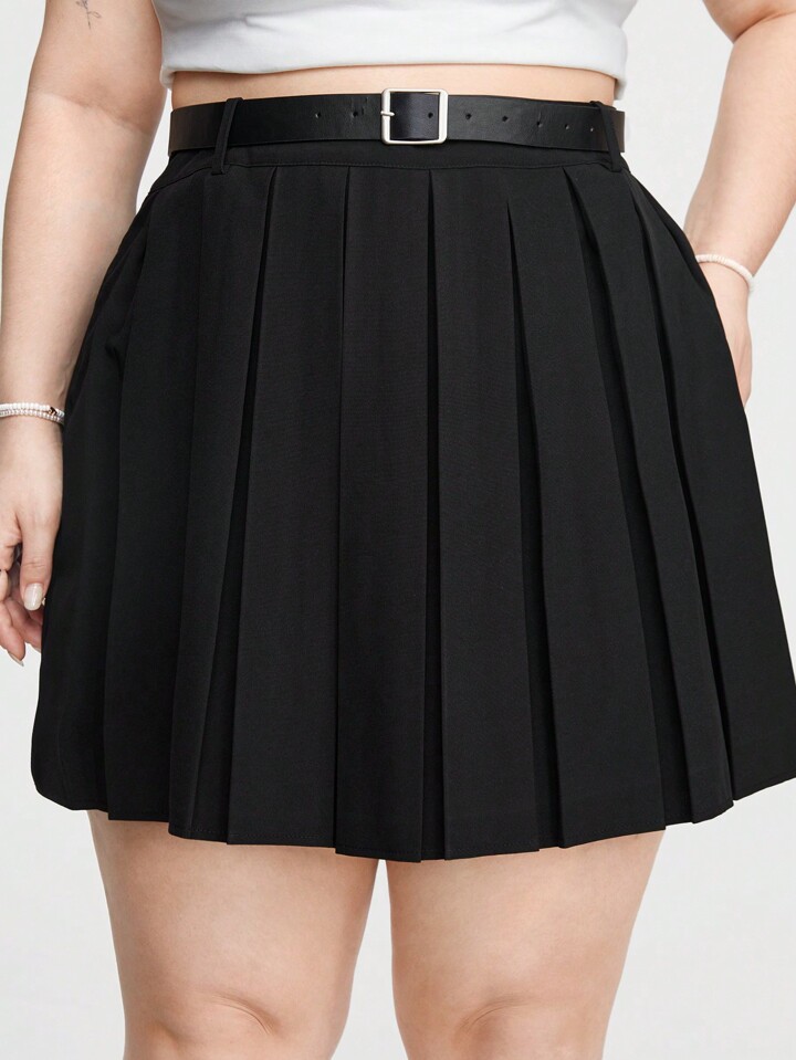 Kawaii Plus Size Solid Color Pleated Skirt For Daily Wear