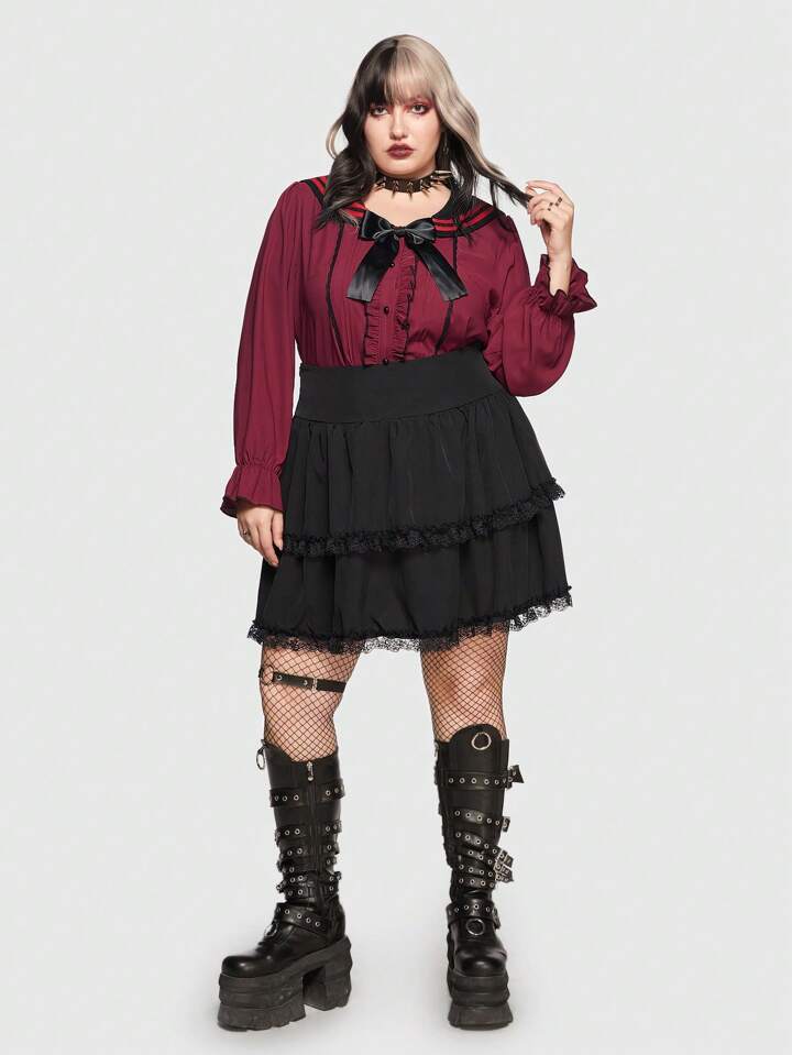 Kawaii Plus Size Women's Navy Collar Bow Decorated Shirt