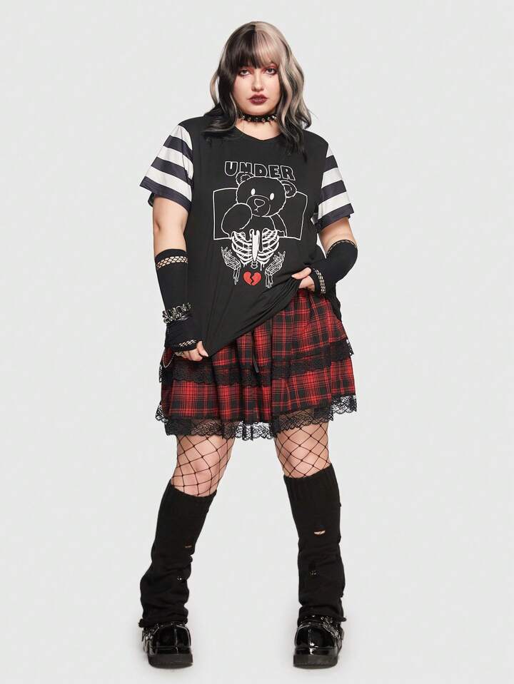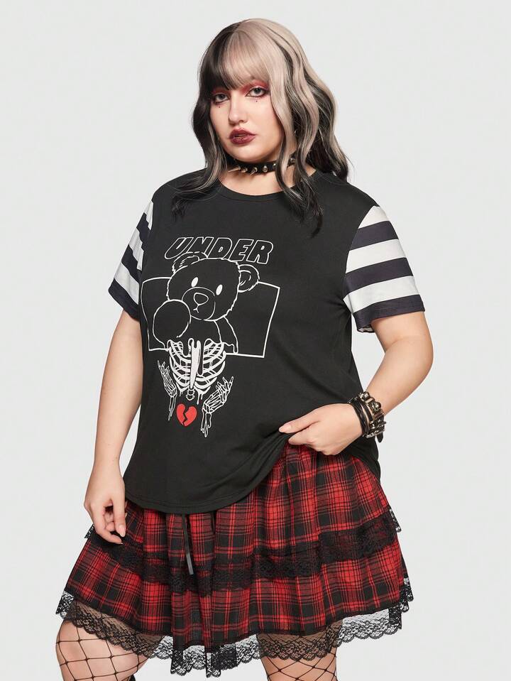 Kawaii Plus Striped & Cartoon Graphic Tee