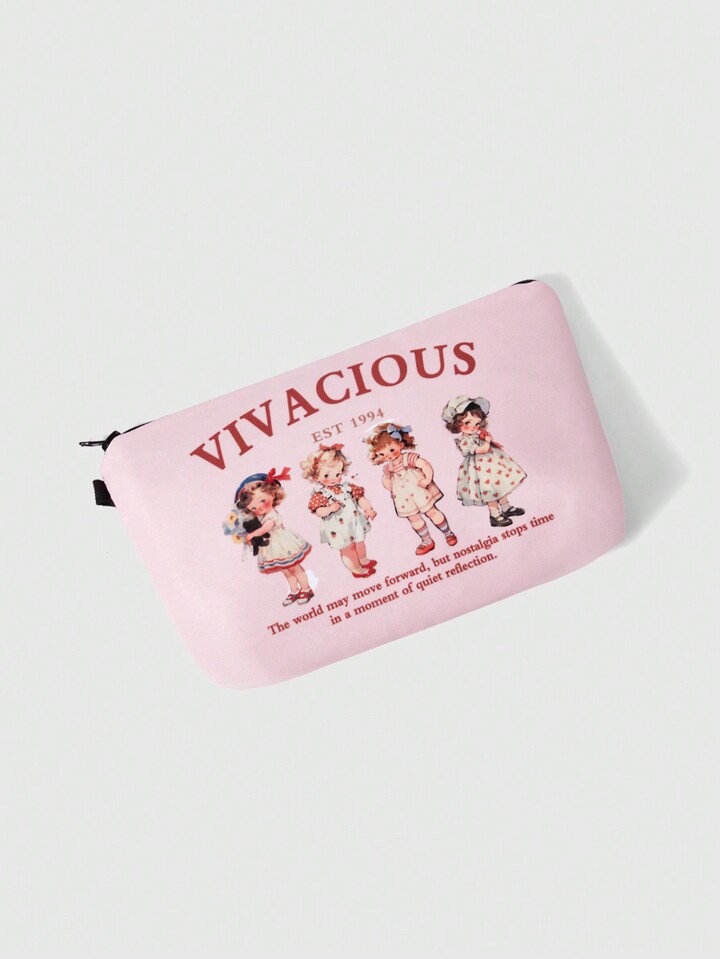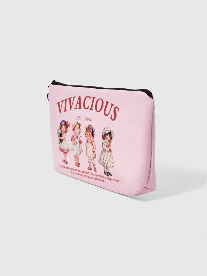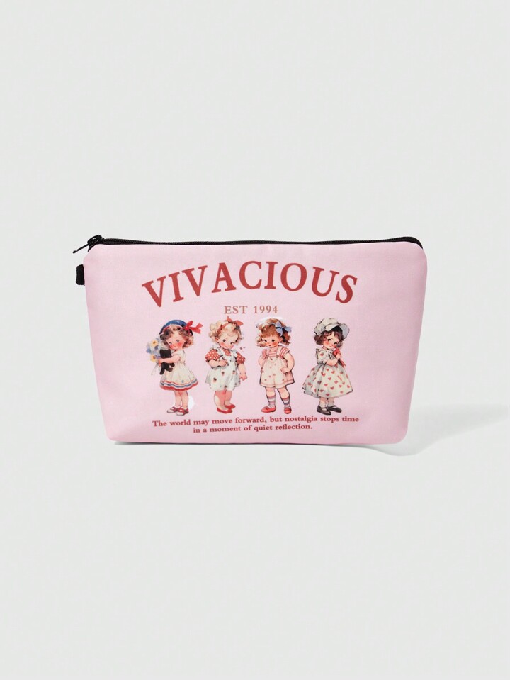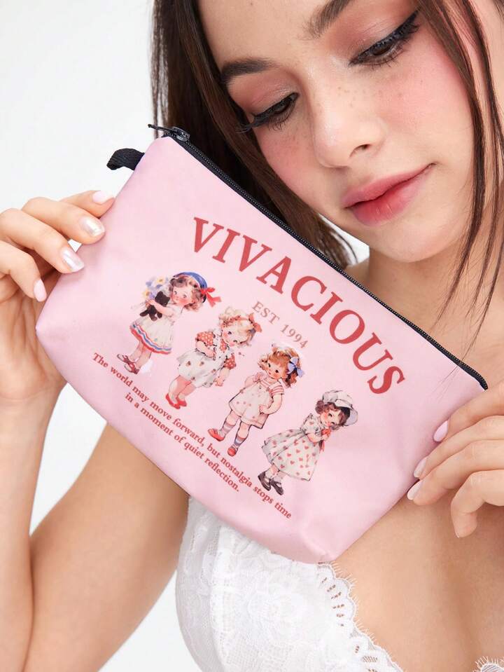Kawaii Polyester Pink Girl Pattern Portable Zipper Cosmetic Bag, Women's Travel Toiletry Organizer, Holiday Gift