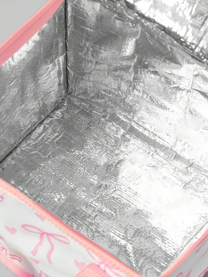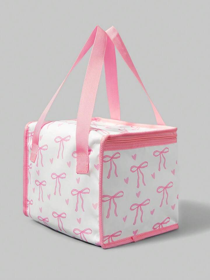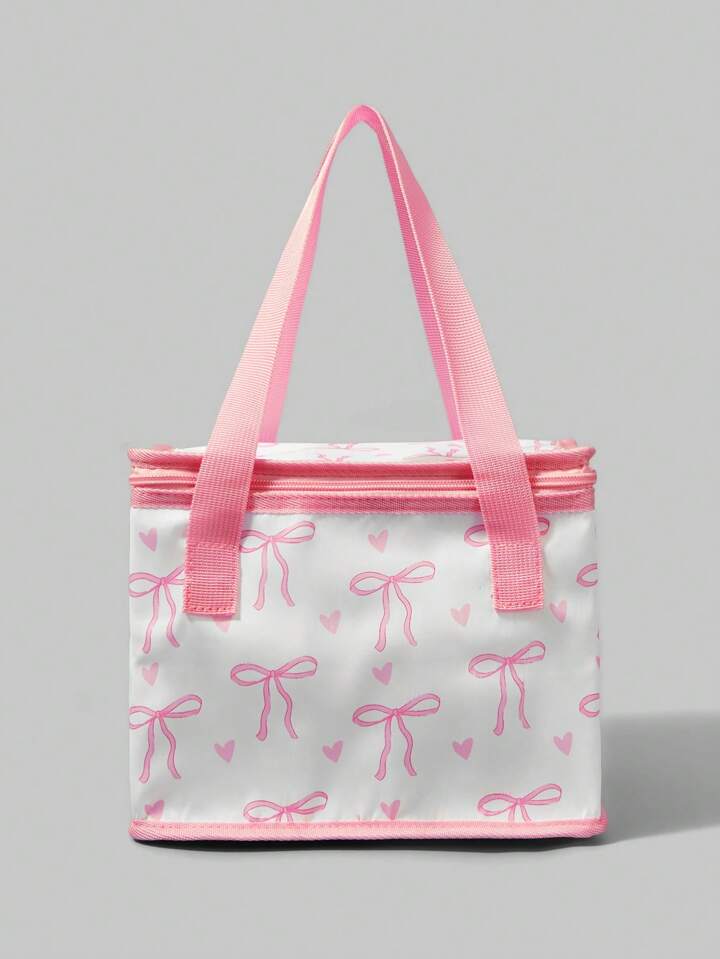 Kawaii Ribbon & Heart Printed Cute & Fashionable Large Capacity Thermal Insulated Lunch Bag
