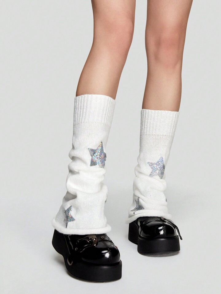 Kawaii Sequin Star Decor Solid Leg Warmers