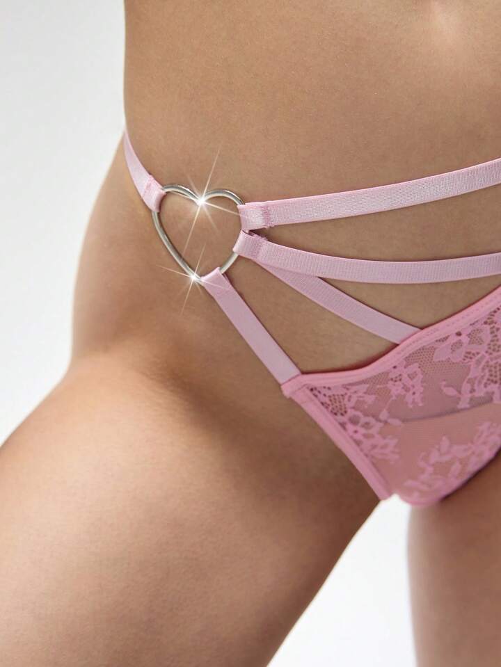 Kawaii Sexy Lace Heart Metal Hook Triangle Panties For Women