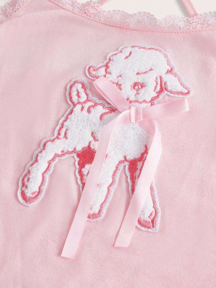 Kawaii Sheep Patched Contrast Lace Cami Top