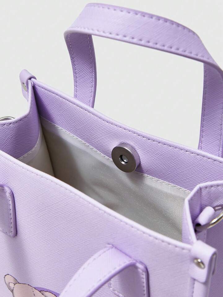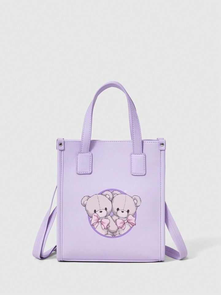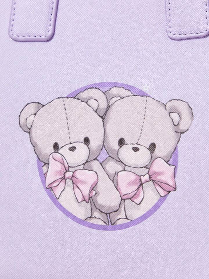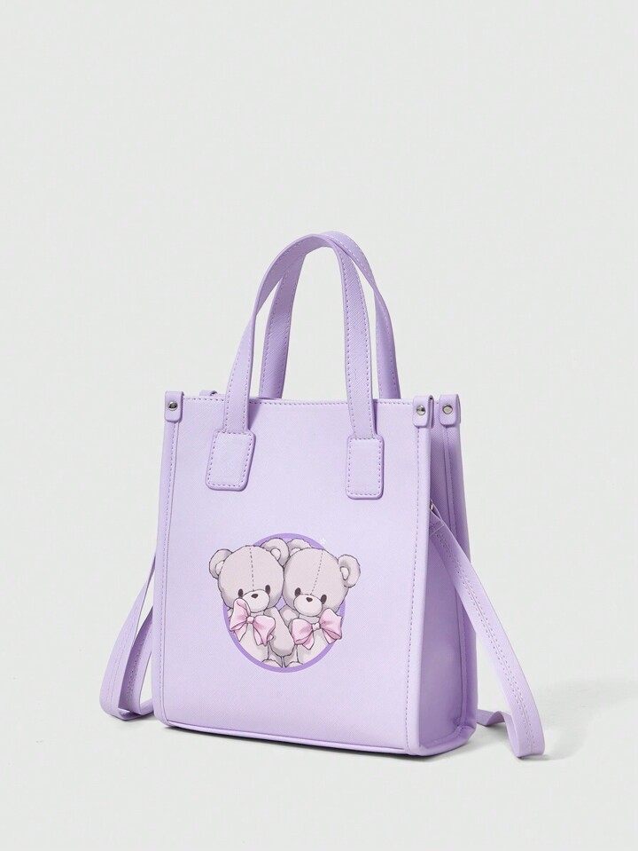 Kawaii Simple And Elegant Purple Teddy Bear Ladies' Handbag, Daily Use