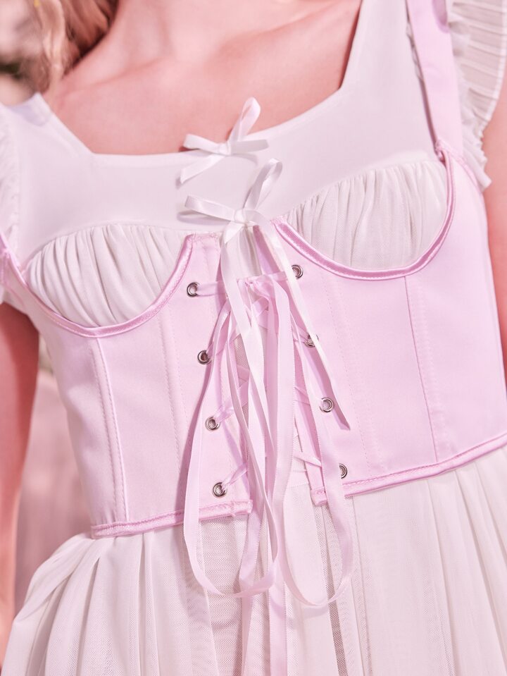 Kawaii Solid Lace Up Shapewear Top
