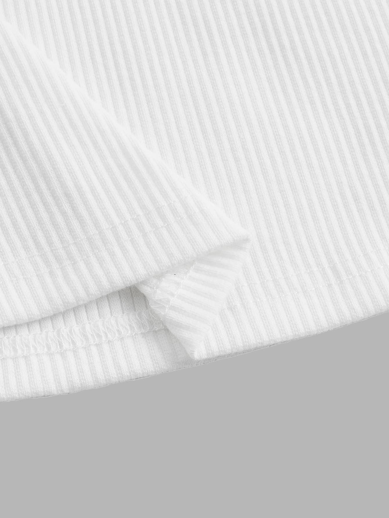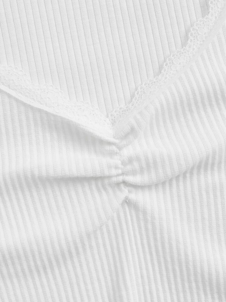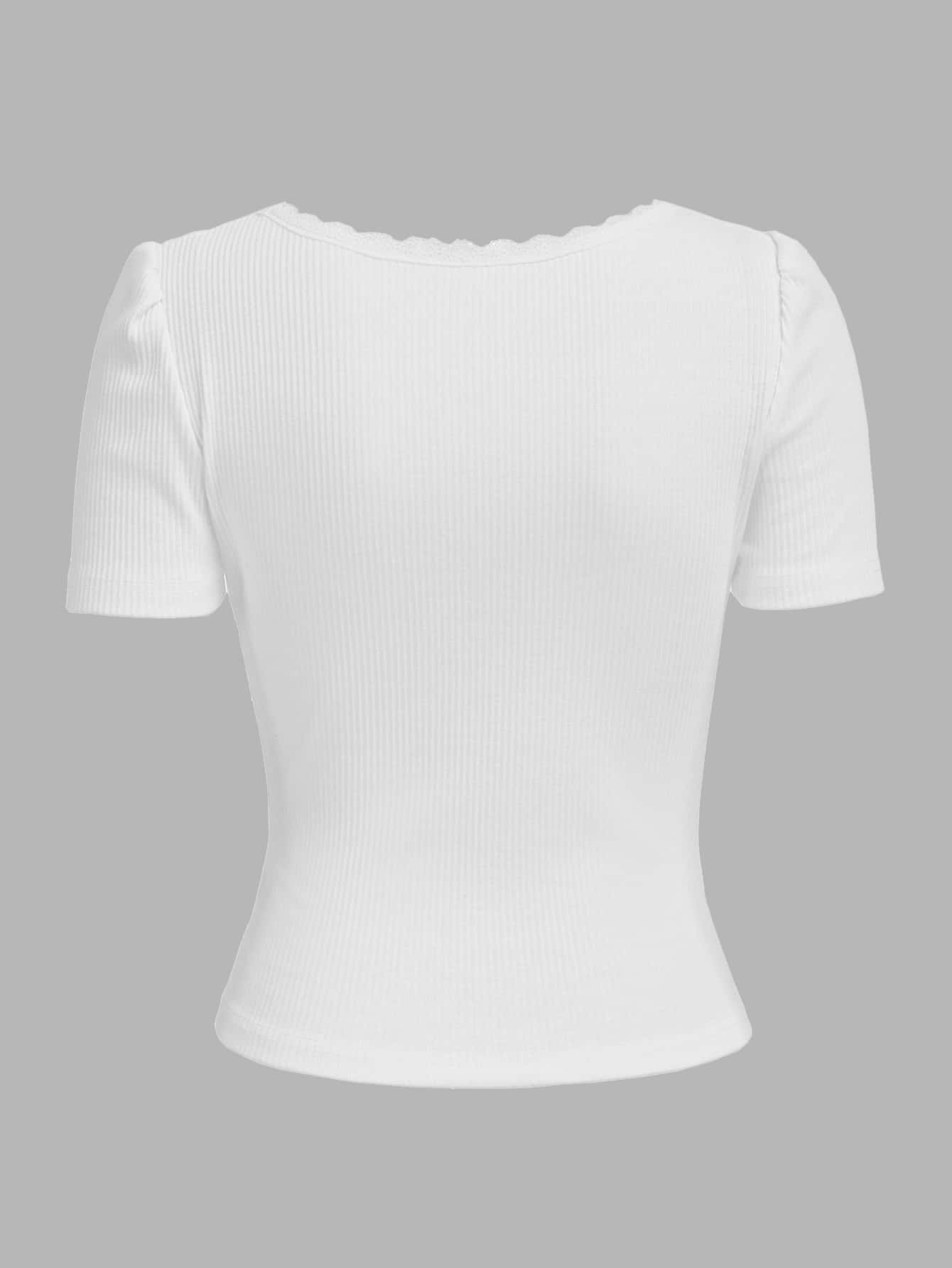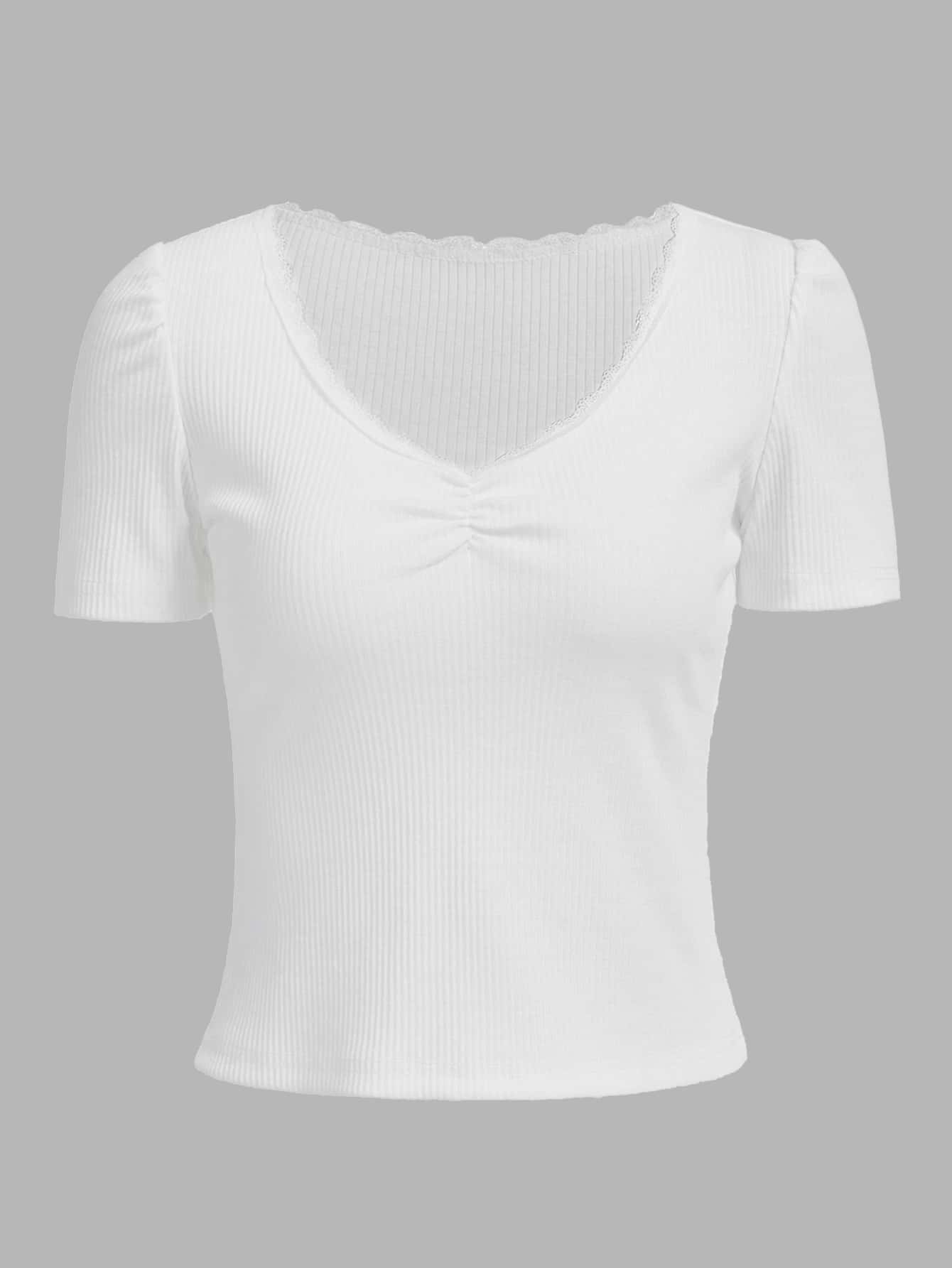Kawaii Solid Ruched Contrast Lace Ribbed Tee