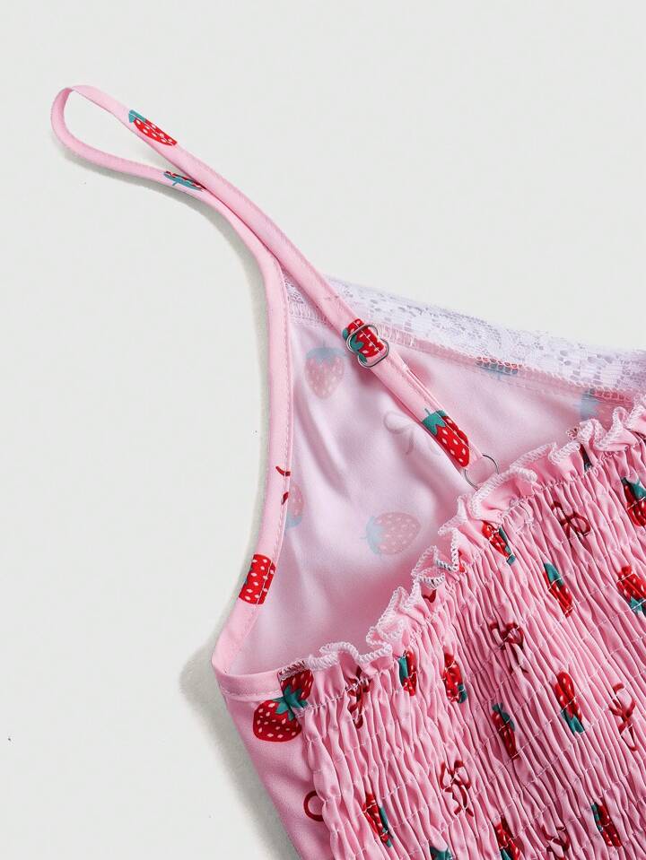 Kawaii Strawberry Print Contrast Lace Cami Dress