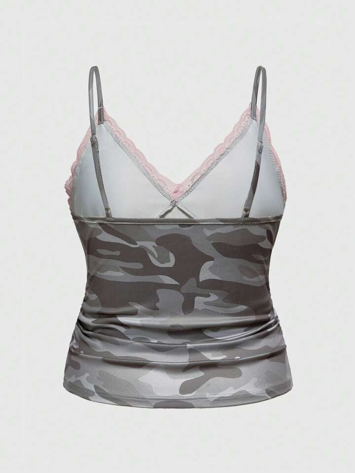 Kawaii Summer Tops Cute Pink Lace Patchwork Camo Plus Size Women Camisole Tank Top, Suitable For School, Summer