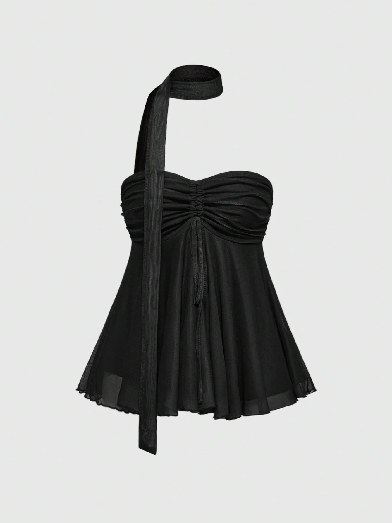 Kawaii Summer Y2K Women Cute Solid Black Tube Top With Neck Tie