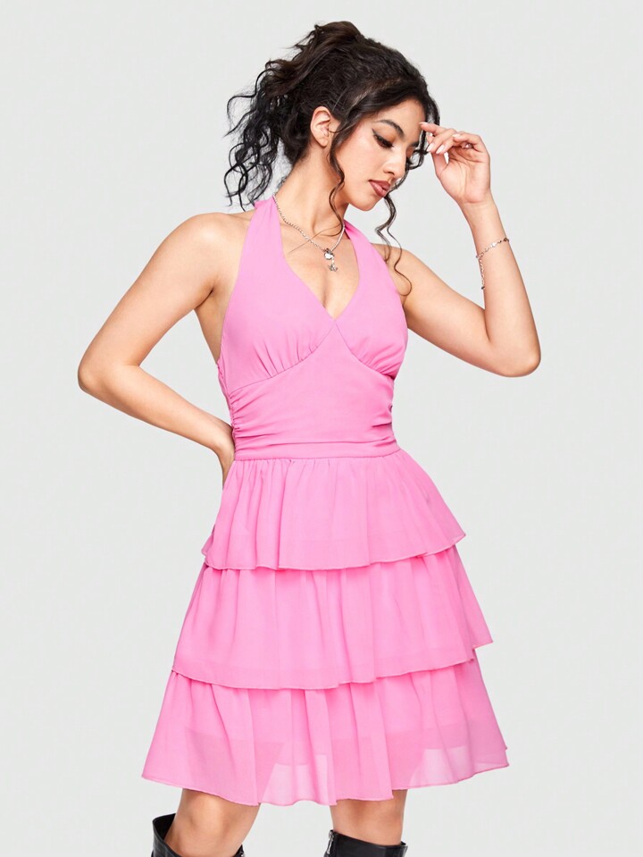 Kawaii Sweet And Sexy Slim Fit Ruched Neckline Cake Dress Hem Halter Dress