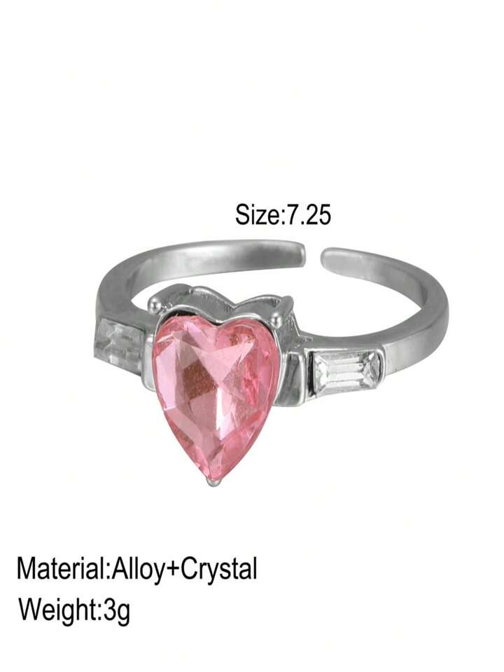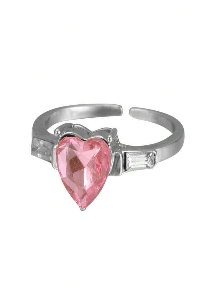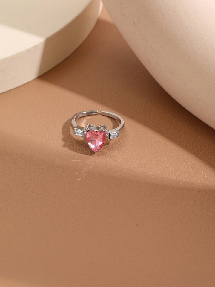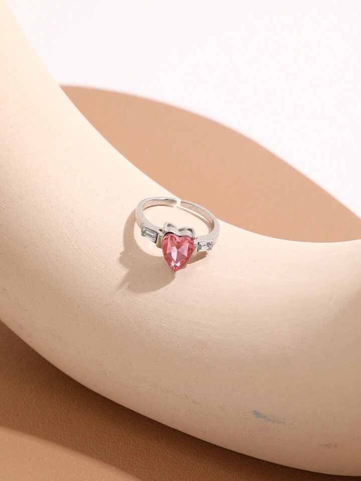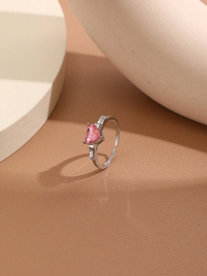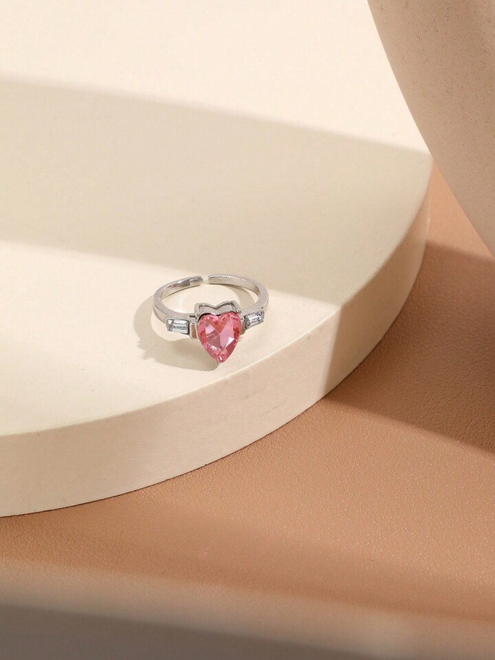 Kawaii Sweet Delicate Girl's Heart Finger Ring, Fashionable & Light Luxury Hand Jewelry, Pink Heart Shaped Ring For Girls