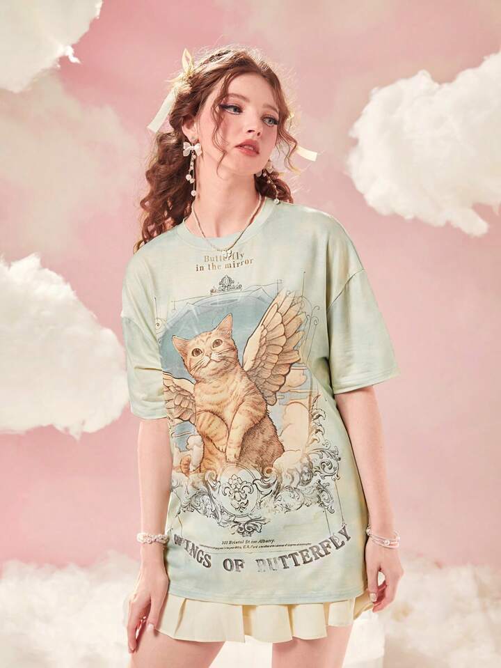 Kawaii Tie Dye Cartoon Graphic Drop Shoulder Tee