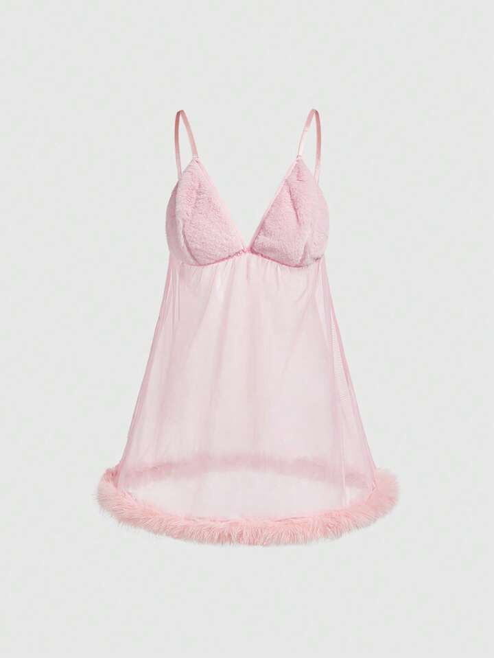 Kawaii Valentine's Day Cute & Sweet Doll Dress, Plush Fabric Sexy Nightgown For Women