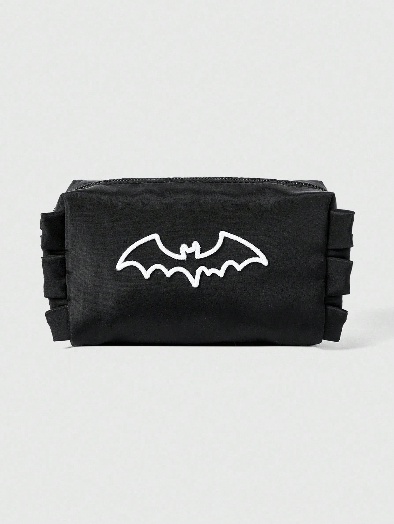 Kawaii Vintage Dark Gothic Bat Embroidery Coin Purse Ruched Makeup Bag + Star Zipper Pull