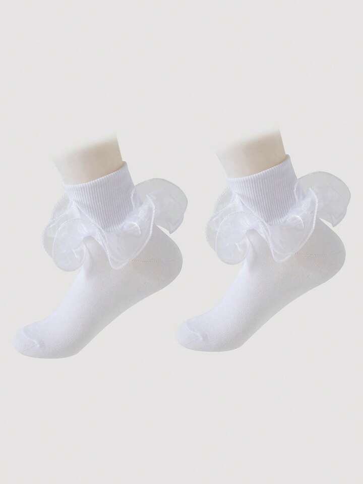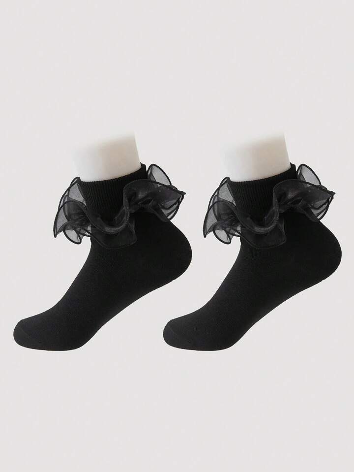 Kawaii Women Elegant Solid Color Mesh Splice Mid-Calf Socks