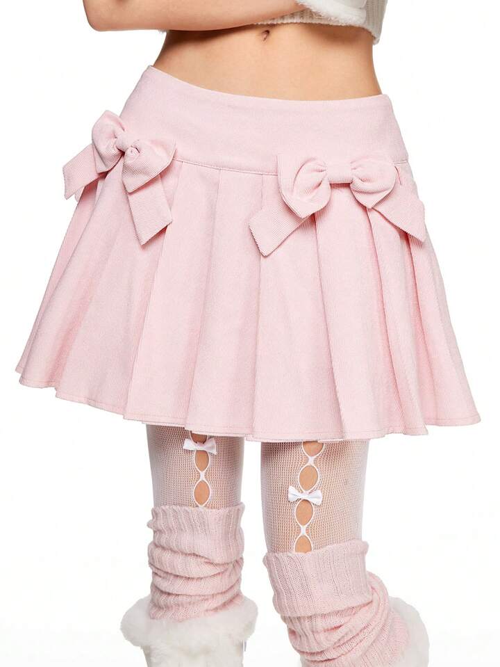 Women Kawaii Style Pleated Bow Accent Mini Skirt