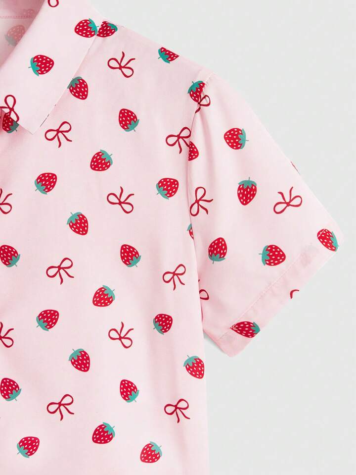 Kawaii Women'S Strawberry Printed Short Sleeve Shirt