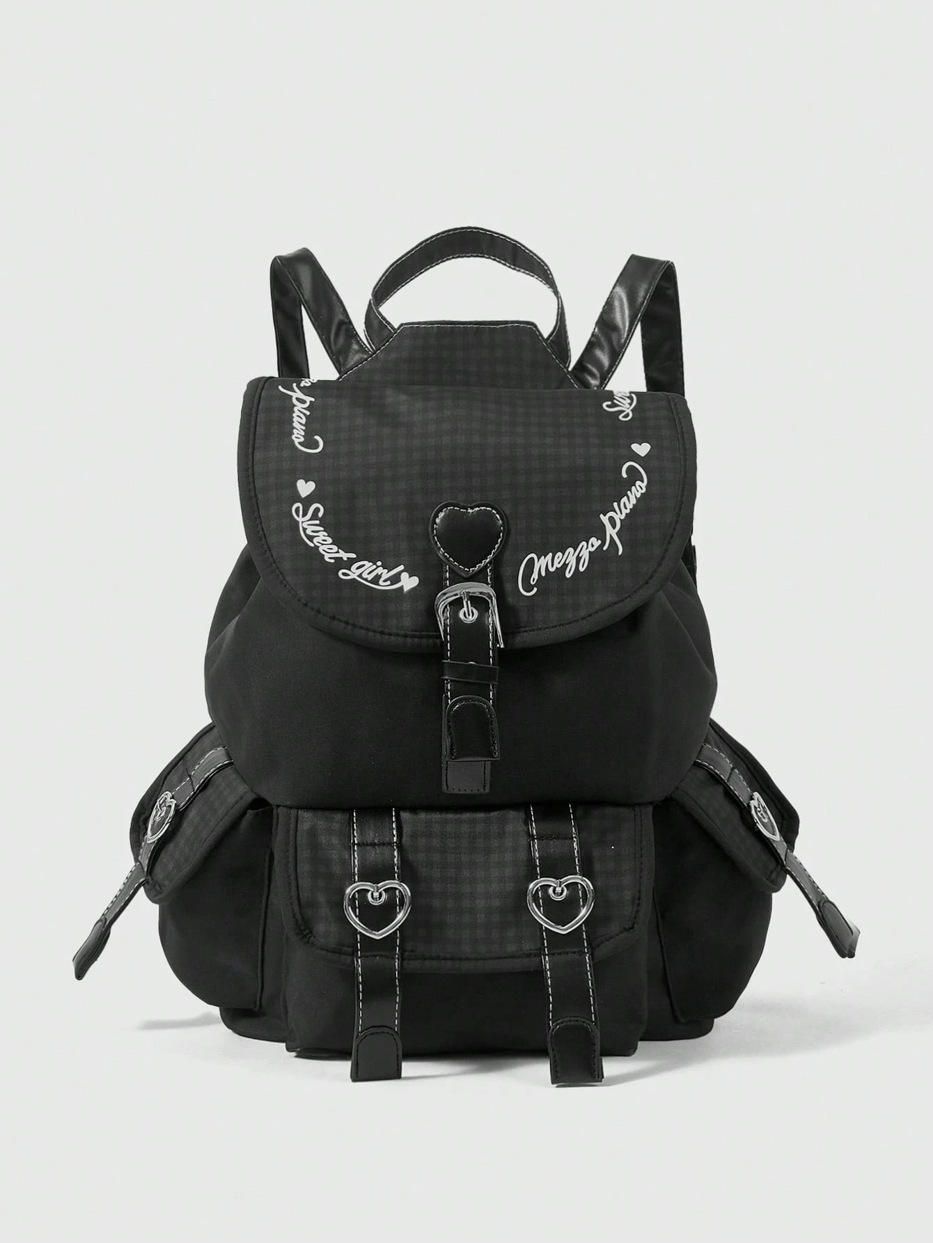 Kawaii Women's Adjustable Buckle Heart Decor Backpack, Everyday Carry