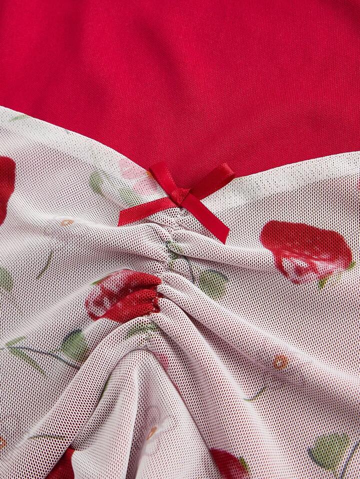 Women's Babydoll Puff Sleeve Strawberry Mesh Kawaii Allover Print T-Shirt, School