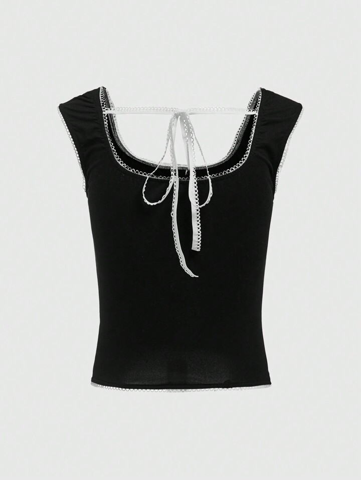 Kawaii Women's Back Strap Bow Decorated T-Shirt
