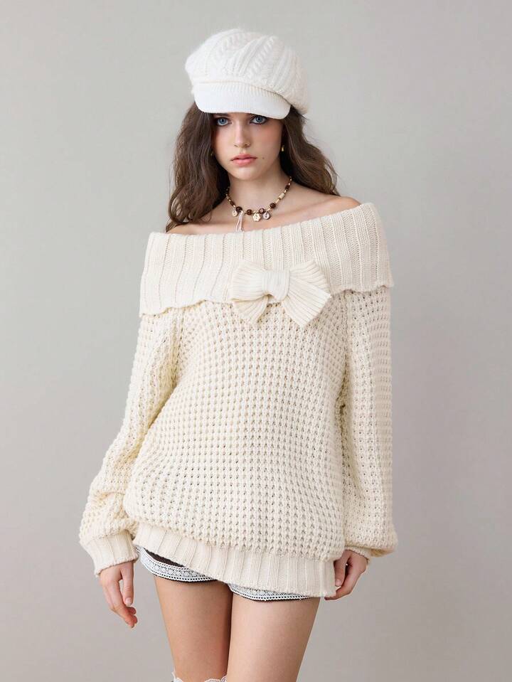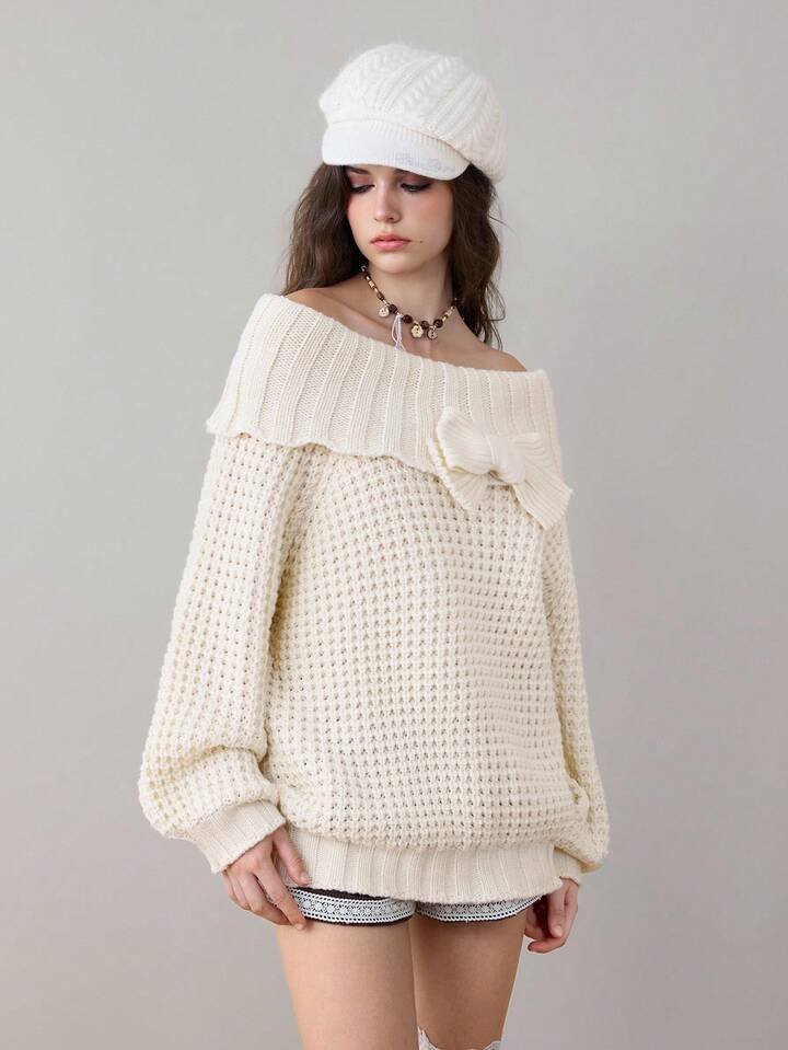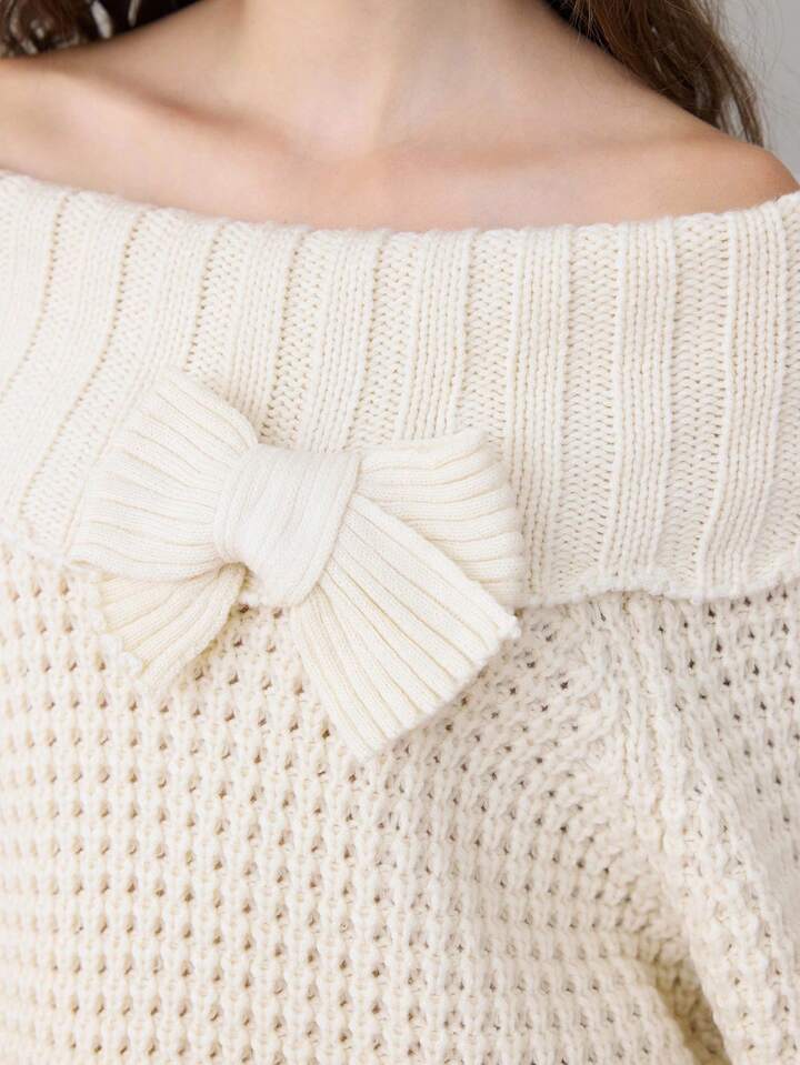 Kawaii Women's Bowknot Decor Off-Shoulder Sweater