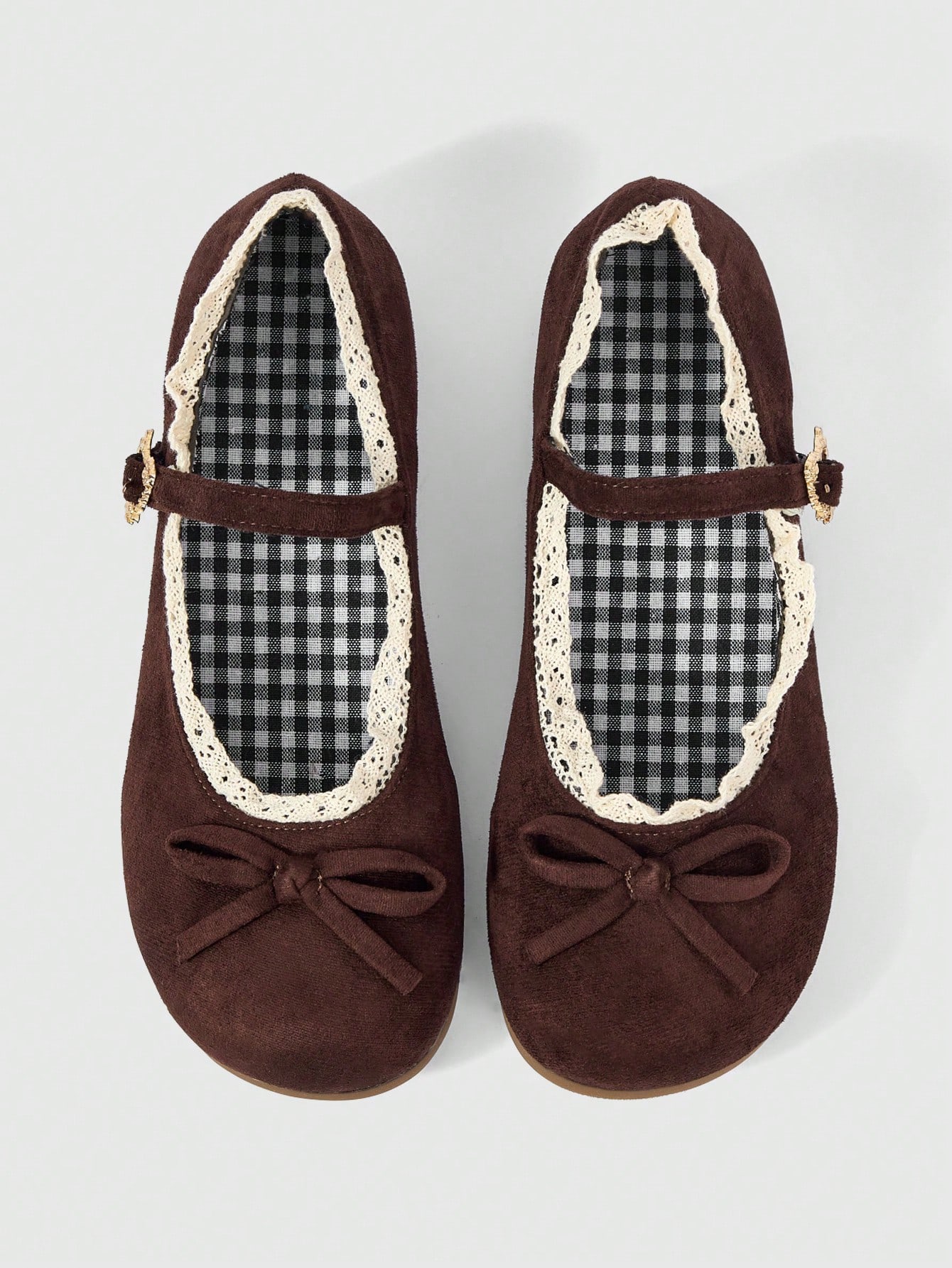 Kawaii Women's Brown Loafers, Closed Toe Mary Jane Pumps, Bow & Lace Lolita Ballet Flats For Christmas