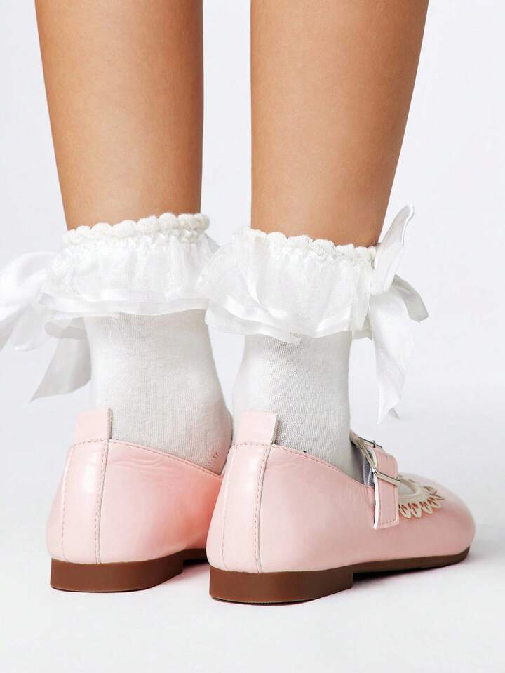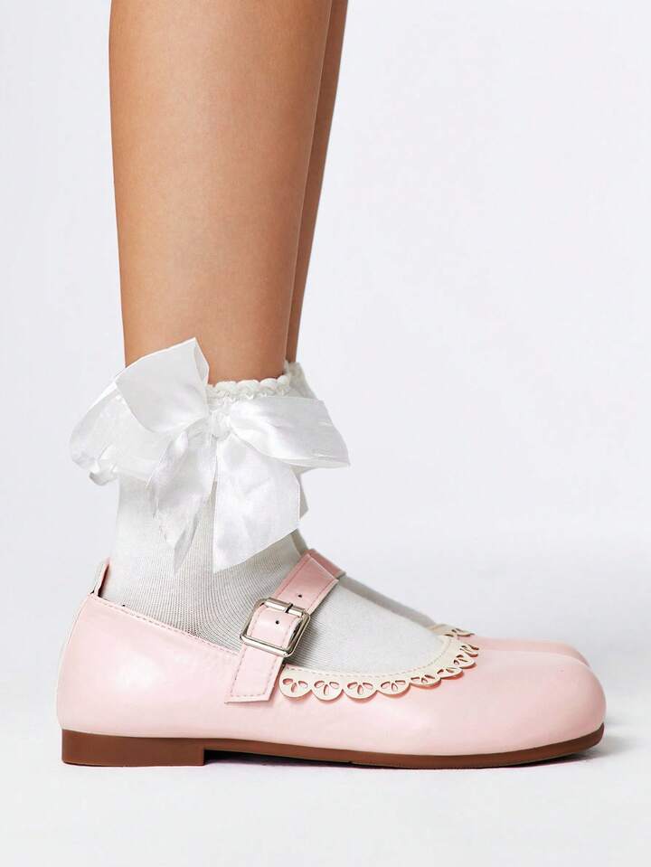 Kawaii Women's Brown Loafers, Closed Toe Mary Jane Shoes, Bow Lace Lolita Ballet Flats