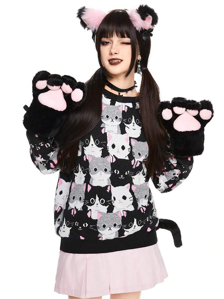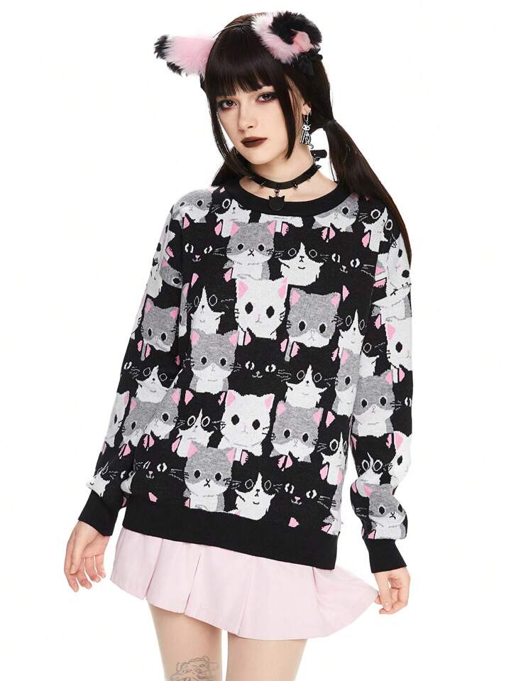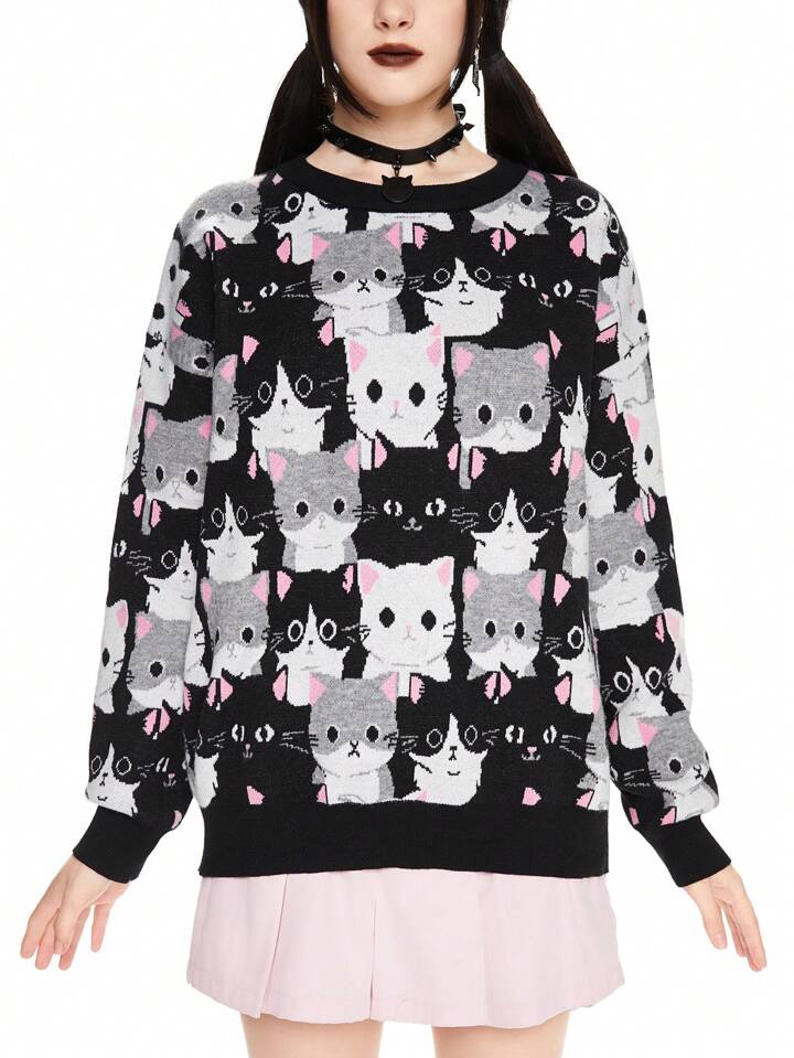 Kawaii Women's Casual Cat Pattern Knit Sweater