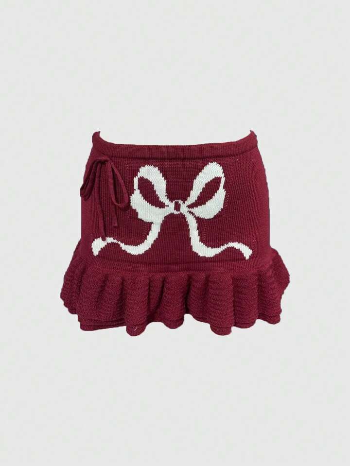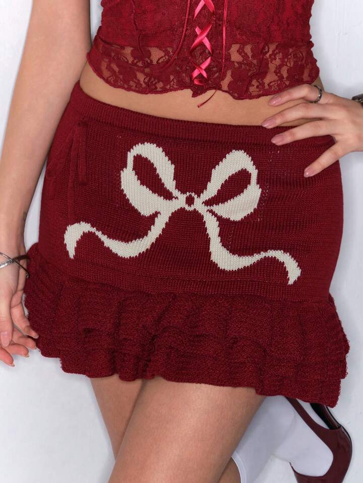 Kawaii Women's Christmas Bowknot Knitted Skirt