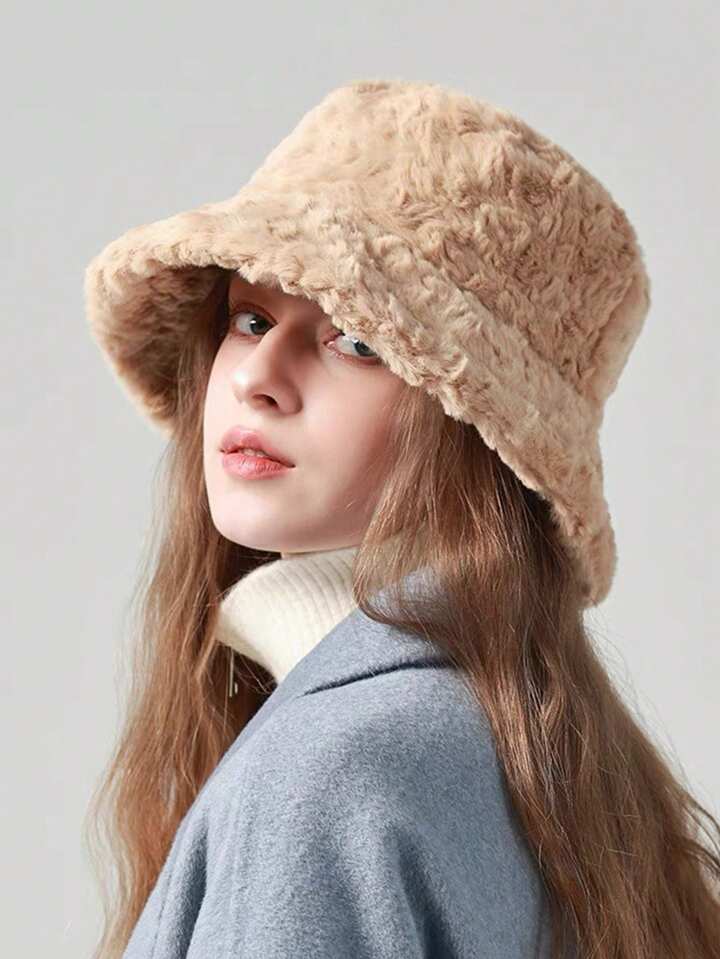 Kawaii Women's Comfortable Curly Hair Warm Wide Brim Bucket Hat