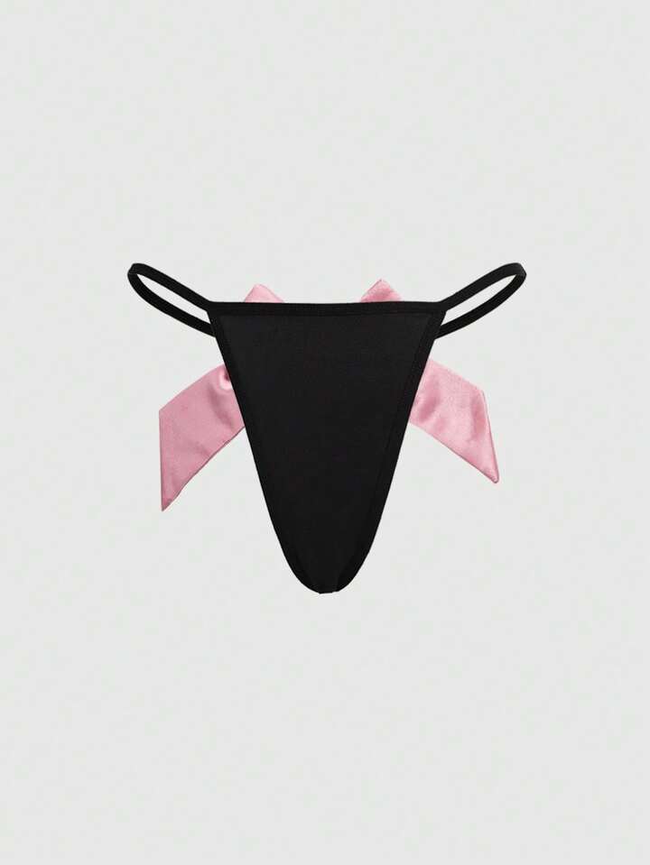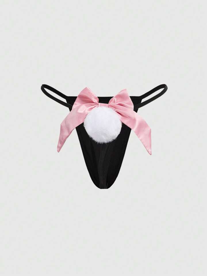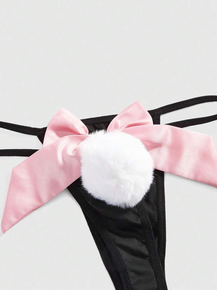 Kawaii Women's Cute Bowknot & Fluffy Ball Thong Panties