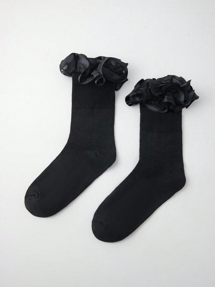Kawaii Women's Cute Comfortable Ruffle Lace Trim Mid-Calf Socks