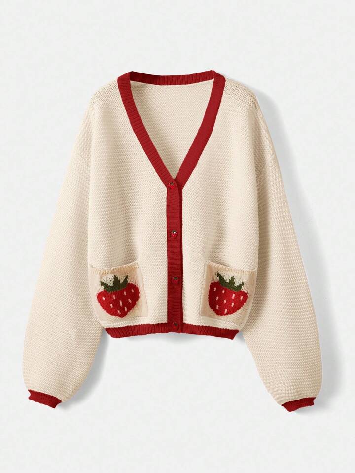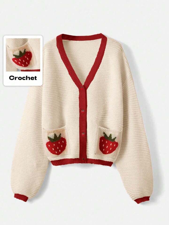 Kawaii Women's Fashion Casual Cute Crochet Strawberry Button Cardigan