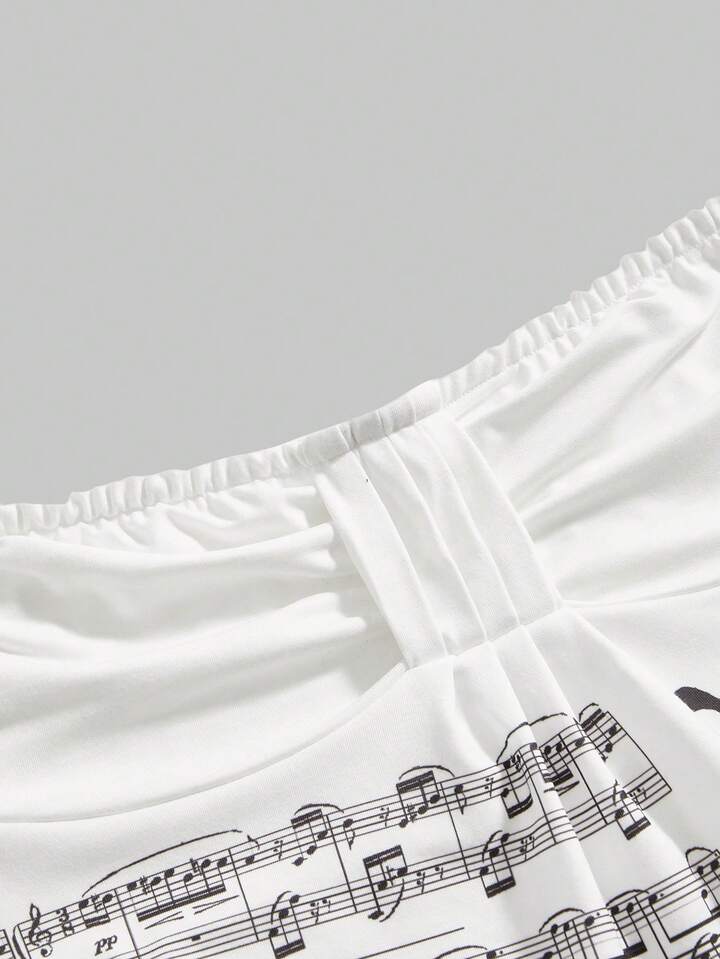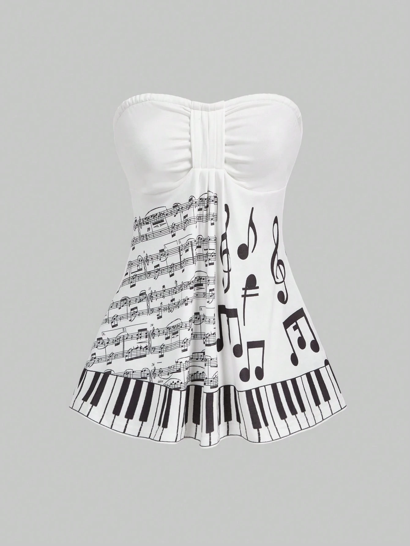 Kawaii Women's Fashion Pleated Stave & Musical Note Print Bandeau Top