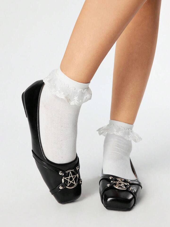 Kawaii Women's Fashion Square Toe Star Rivets Design Flats, Sweet Punk Style Casual Shoes Pink, Suitable For Party, Daily Wear, Evening Dress, Comfortable & Versatile