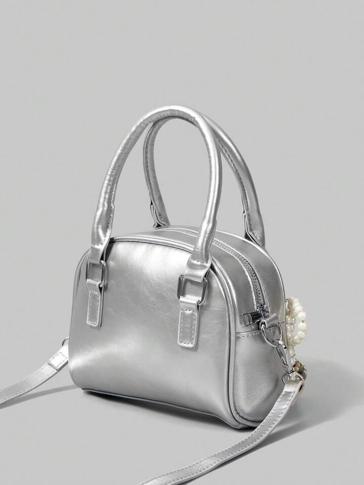Kawaii Women's Fashion Versatile Bow Decor Silver Handbag