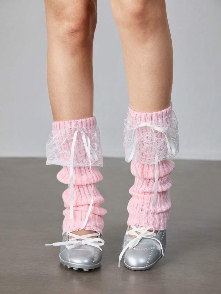 Kawaii Women's Fashionable Contrast Lace Leg Warmers, Warm For Autumn/Winter