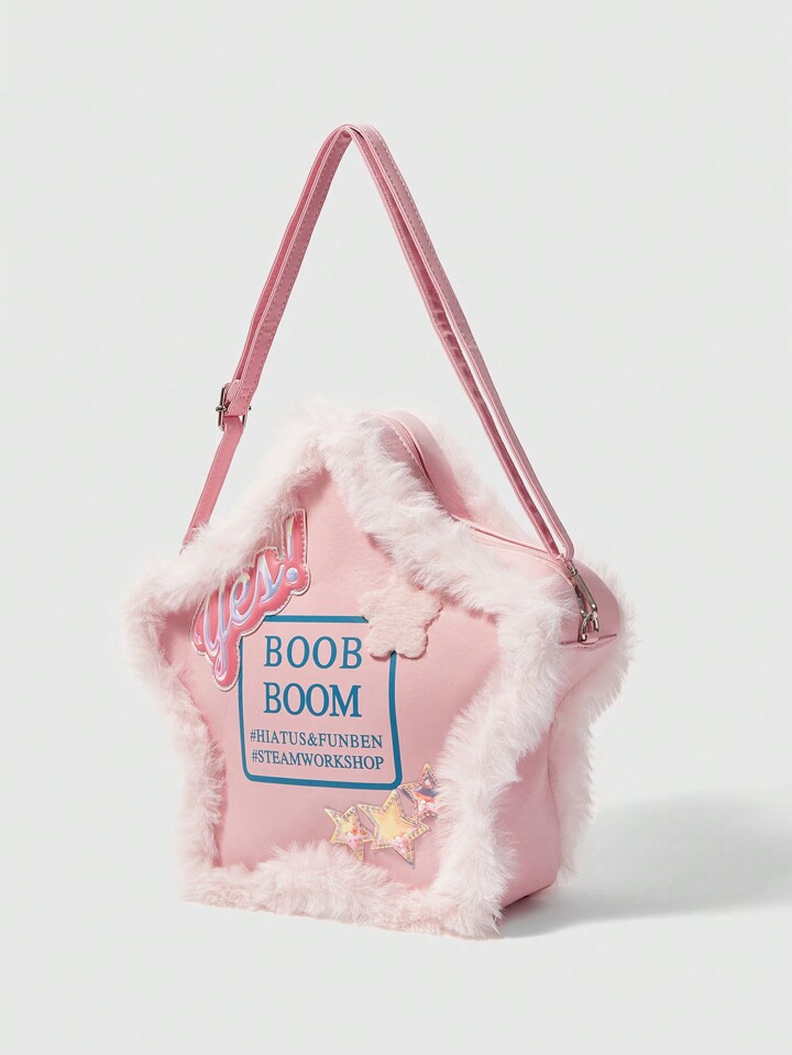 Kawaii Women's Fashionable Plush Pentagram Pattern Crossbody Bag Valentines